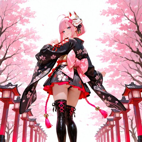 A 16-year-old petite magical girl with flat chest and kawaii appearance stands cheerfully in a dreamy rococo palace setting. She has vibrant pink twintails tied with red ribbons, delicate facial features with a bright smile, and sparkling beautiful eyes. She wears an elaborate (Pastel Pink luxurious Prince costume:1.6) adorned with (heart motifs:1.5), featuring long sleeves, a (luxurious Pastel Blue mini skirt with White frill:1.4), and (White luxurious Cape:1.3) flowing behind her. Her outfit is completed with (White luxurious boots:1.3), (White luxurious gloves:1.2), and a (luxurious crown:1.3), while a (dagger on waist:1.3) adds a princely touch. She holds a heart-shaped magical staff with both hands, looking directly at the viewer with an innocent, cheerful expression. The outdoor palace setting features intricate rococo architecture bathed in warm afternoon sunlight, with floating petals drifting through the air and soft lens flare effects enhancing the dreamlike atmosphere. The lighting is soft and warm, highlighting every detail of her flawless skin, silky hair, and ornate costume.