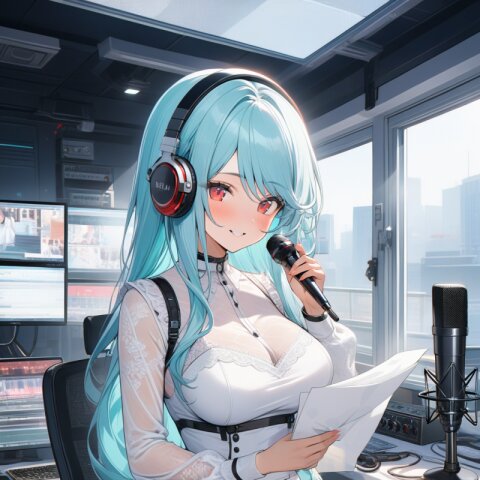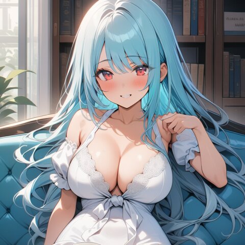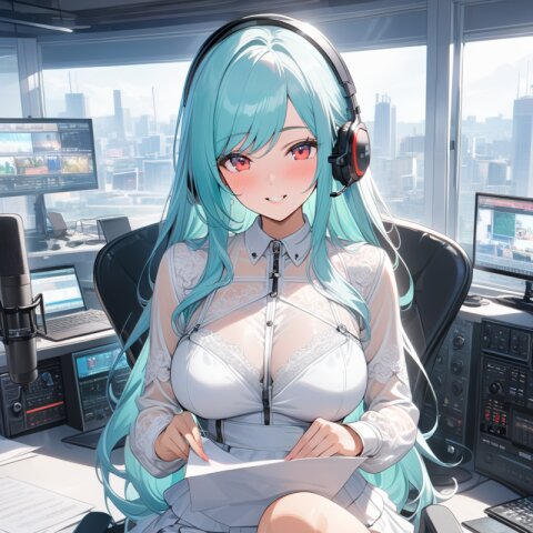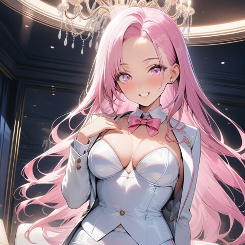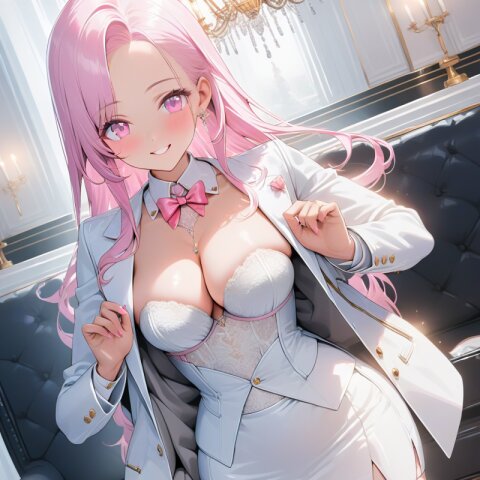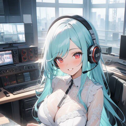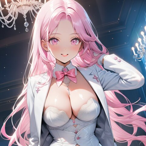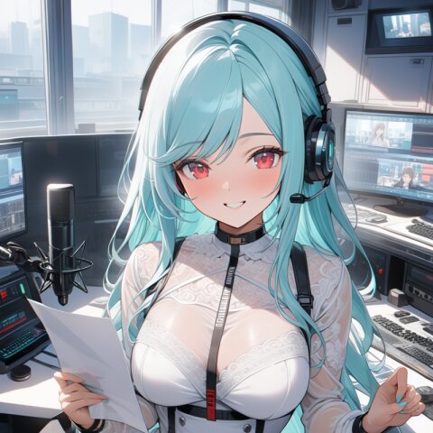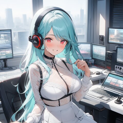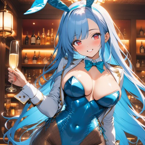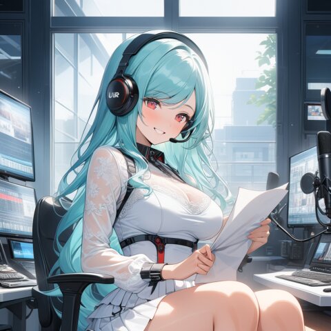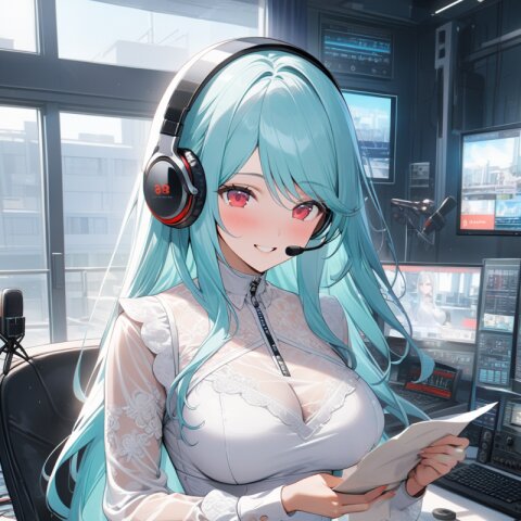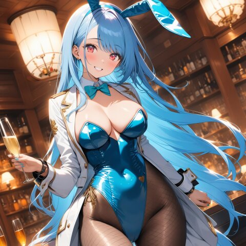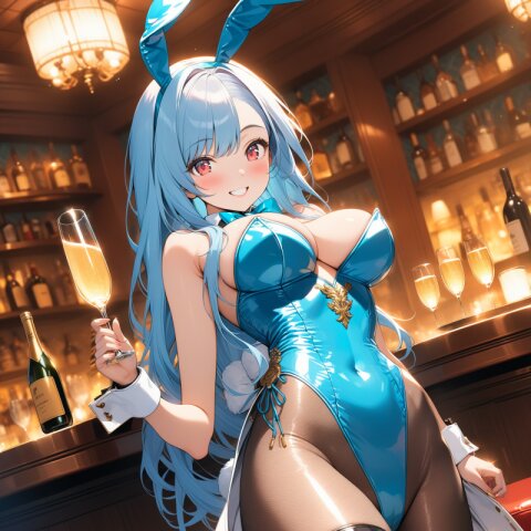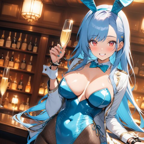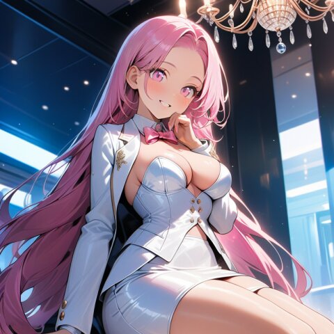 AIイラスト生成で最近好きになったモデルの ChromaXL v1b でIRIAM配信者さんのアバターを基にナイトドレスでラウンジを楽しむ姿をAI画像生成しました