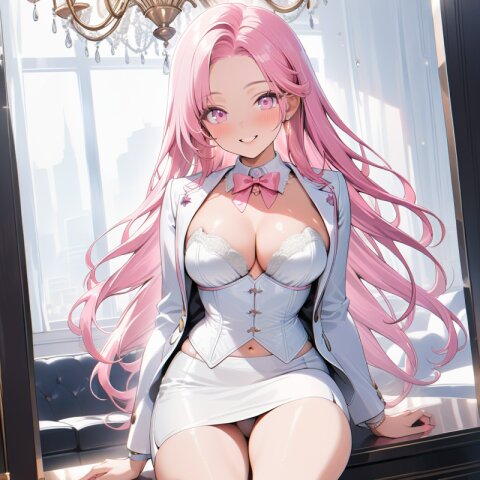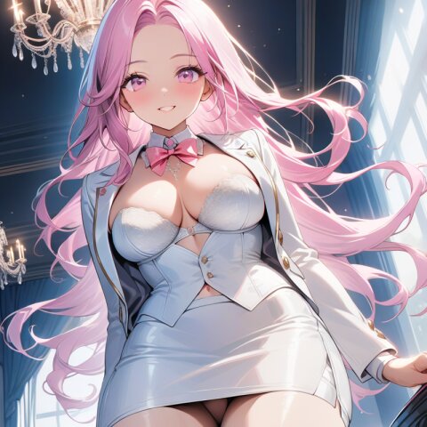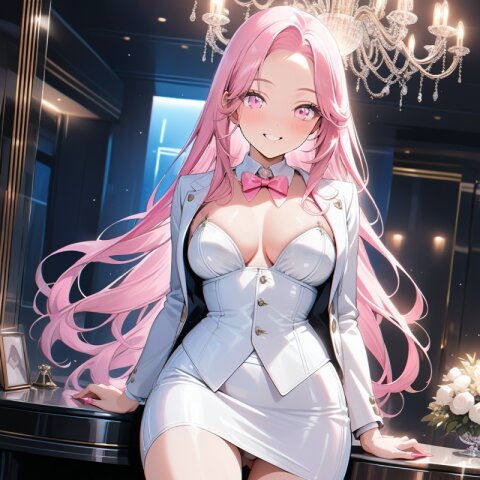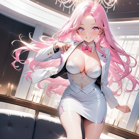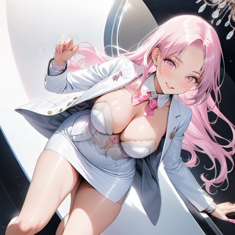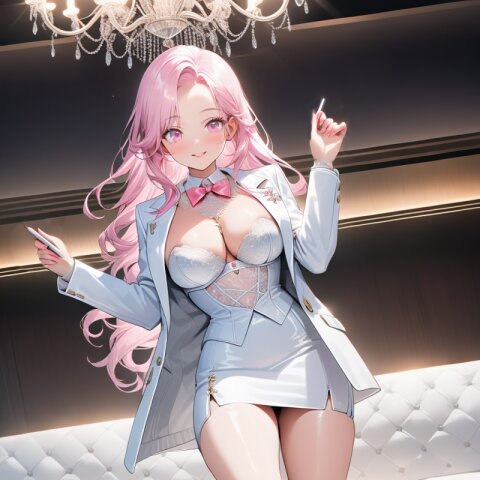 ((8k, masterpiece ,best quality ,ultra-detailed)), game cg, masterpiece, (perfect face:1.1025), (perfect hands:1.1025), (perfect legs:1.1025), (perfect arms:1.1025), (perfect fingers:1.1025), (full body:1.1025), 1girl, solo, front view, ((dynamic angle, dynamic pose):1.5), (night:1.2), (in the lounge:1.2), (white light Reflection:1.2), elegant, graceful, gorgeous, (black hair:1.4), (black bob cut:1.4), (green inner hair:1.4), (short hair:1.3), (blunt ends:1.3), (blunt bangs:1.3), (green eyes:1.2), japanese_girl, (large breasts:1.2), (cleavage:1.2), (gleaming skin:1.5), (smile:1.3), blush, BREAK (white theme:1.7), (all white:1.7), (long sleeve white pencil dress with tulle scalloped lace:1.6), ((hourglass silhouette, squeeze waist, emphasized body line):1.5), ((long sleeves with elaborate lace embroidery, lace collar):1.4), (circular cutout on chest:1.4), (white thighhighs:1.4), (white lace-trimmed thighhighs:1.4), (white Christian Louboutin:1.3), <lora:xl_more_art-full_v1:0.6> <lora:add-detail-xl:1>