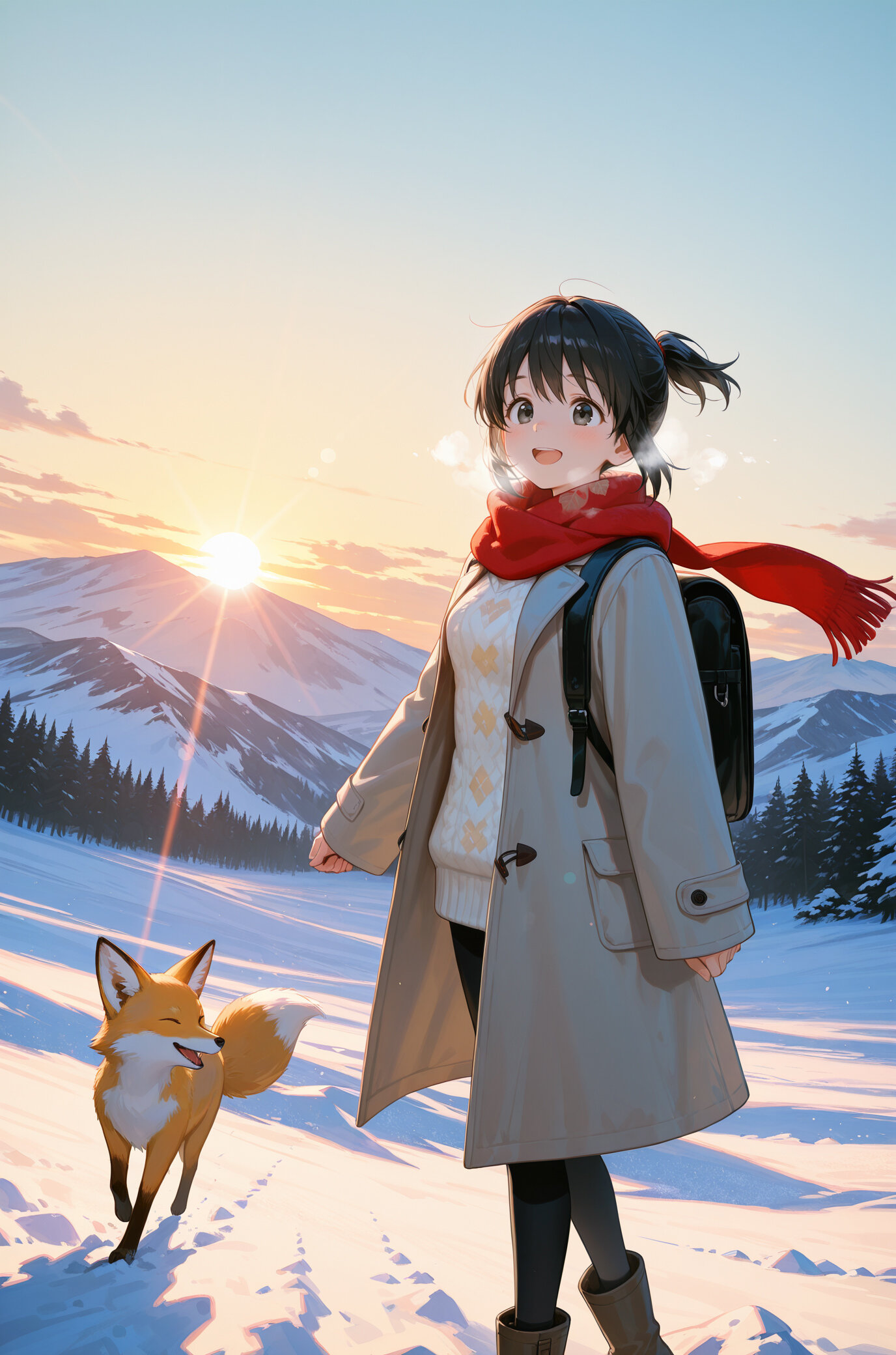 冬山を歩くあかりちゃんとごんちゃんというテーマで生成してみました(*´▽`*)💗