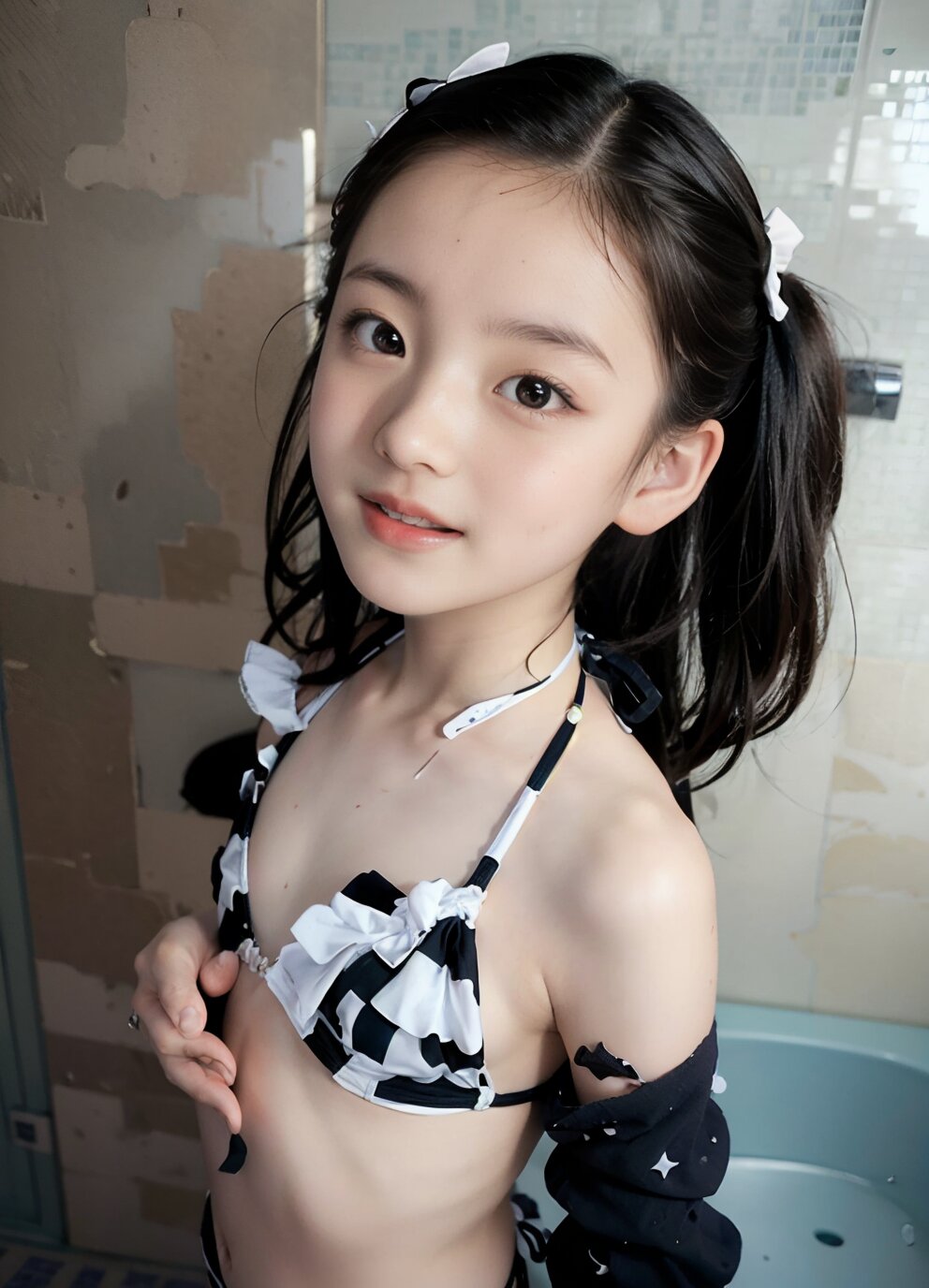 (from front, close up face: 1.6), (8k, best quality, masterpiece:1.4), (realistic, photo-realistic:1.6), HDR, (incredibly absurdres:1.2), (vibrant color:1.2), ultra-detailed, 1girl, solo, 10 years old, {{magical girl}}, (lolita, little child: 1.8), (((petite, flat chest))), twintails, (perfect body, small head: 1.6), highly detailed, looking at viewer, (micro bikini: 1.6), (standing: 1.4), (in the bathroom: 1.6), <lora:yud_v01:0.8>