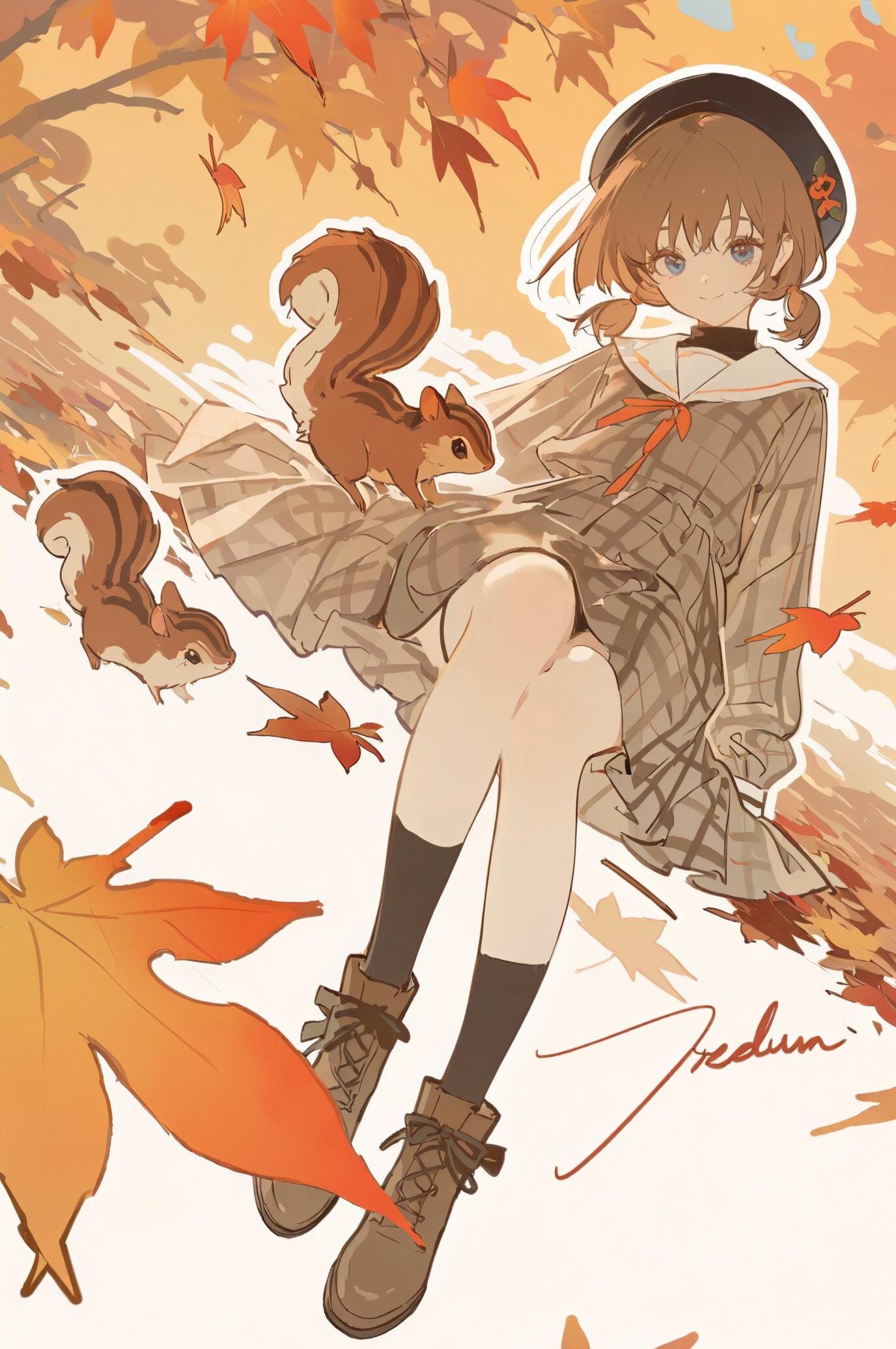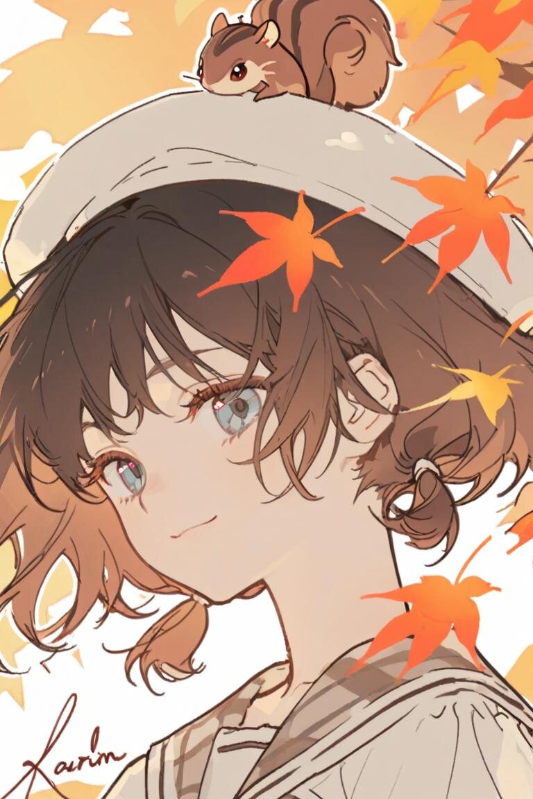 少しノスタルジックな雰囲気になりましたが、秋を満喫する花凜ちゃん沢山描けて楽しかったです🫶🏻︎💕