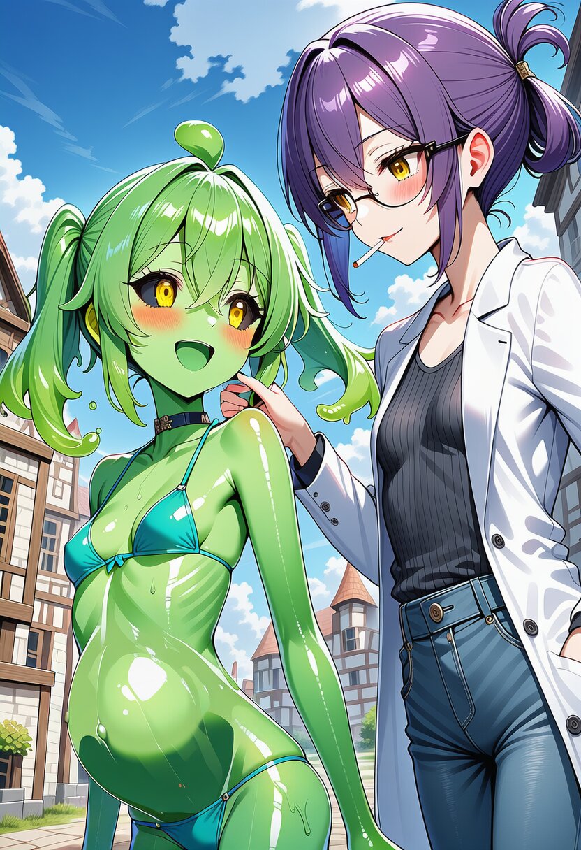 港湾都市オーケンの初期看板娘三人のトリは美泥亜ちゃんです。妊娠した美泥亜ちゃんを想ってアンリさんが加えてるのは禁煙パイプです。