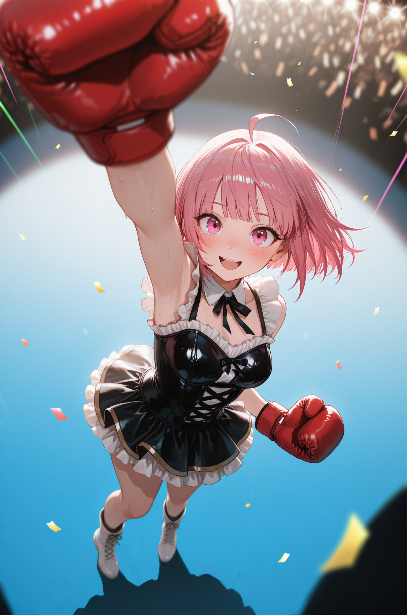 「戦うアイドル」をイメージして、勝利のガッツポーズをするピンクさんを生成してみました(*´▽`*)💗