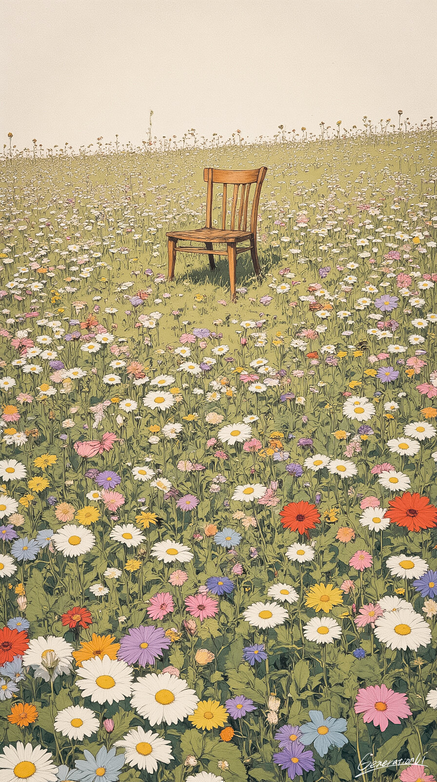 広い花畑の真ん中に、一脚の椅子が置かれている。