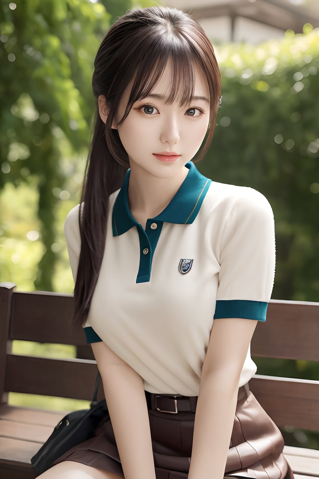 8k, 16k, highres, masterpiece, RAW photo, hyper realistic, photo background, insanely detailed, detailed skin, blurry background, depth of field, natural light, soft lighting, good hands, BREAK Japanese woman, 23yo, (cute:1.1), (pretty:1.1), hyper detailed face, hyper detailed eye, beautiful eye, medium hair,(bangs:1.1),ponytail, thin, tall,170cm tall, short skirt, polo shirt, thigh boots, hyper detailed, extremely detailed,