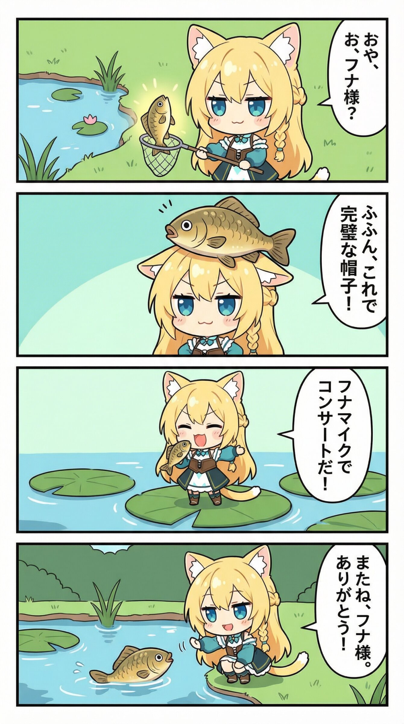 ああっフナさまっ Yuki 2025/11/27使用したAI Gemini/Nano Banana 年齢制限 全年齢 いいね11 シェア #鈴瑠音ルル #いい鮒の日 #4コマ #鮒 #ちびキャラ 11/27は【いい(11)フ(2)ナ(7)「良い鮒」】で、いい鮒の日!鮒をテーマに内容はおまかせで漫画かいてもらったらハイセンスなのがお出しされましたのだ… プロンプト 鮒をテーマにこの子が主役のユニークな短編漫画を作って。セリフはすべて日本語。 ネガティブプロンプト Steps Scale Seed Sampler Noise Strength コメント 送信 Yuki 2025年6月より活動開始 178投稿40フォロー45フォロワー 猫耳推しの初心者です🐾 フォローする 他の作品 全てを見る わくわくハウジング 赤鼻のチアガール ミミサンタ、雪像と化す 特製スノードーム完成❄️ みかんの着うた 突撃!聖夜の晩ごはん エンジェルナイトにゃん🐾 ツリーのトップを飾るのは私! あったかもしれない思い出 いのちの輝きくんリスペクトコーデ つれてきたよ! The Many Moods of Ruru 仲良しふれあいタイム 11/29あれこれの日! フランスパン最高! オペレーション・キャッツ 湯上がりミルク最高♪ おつまみメイド もっと見る