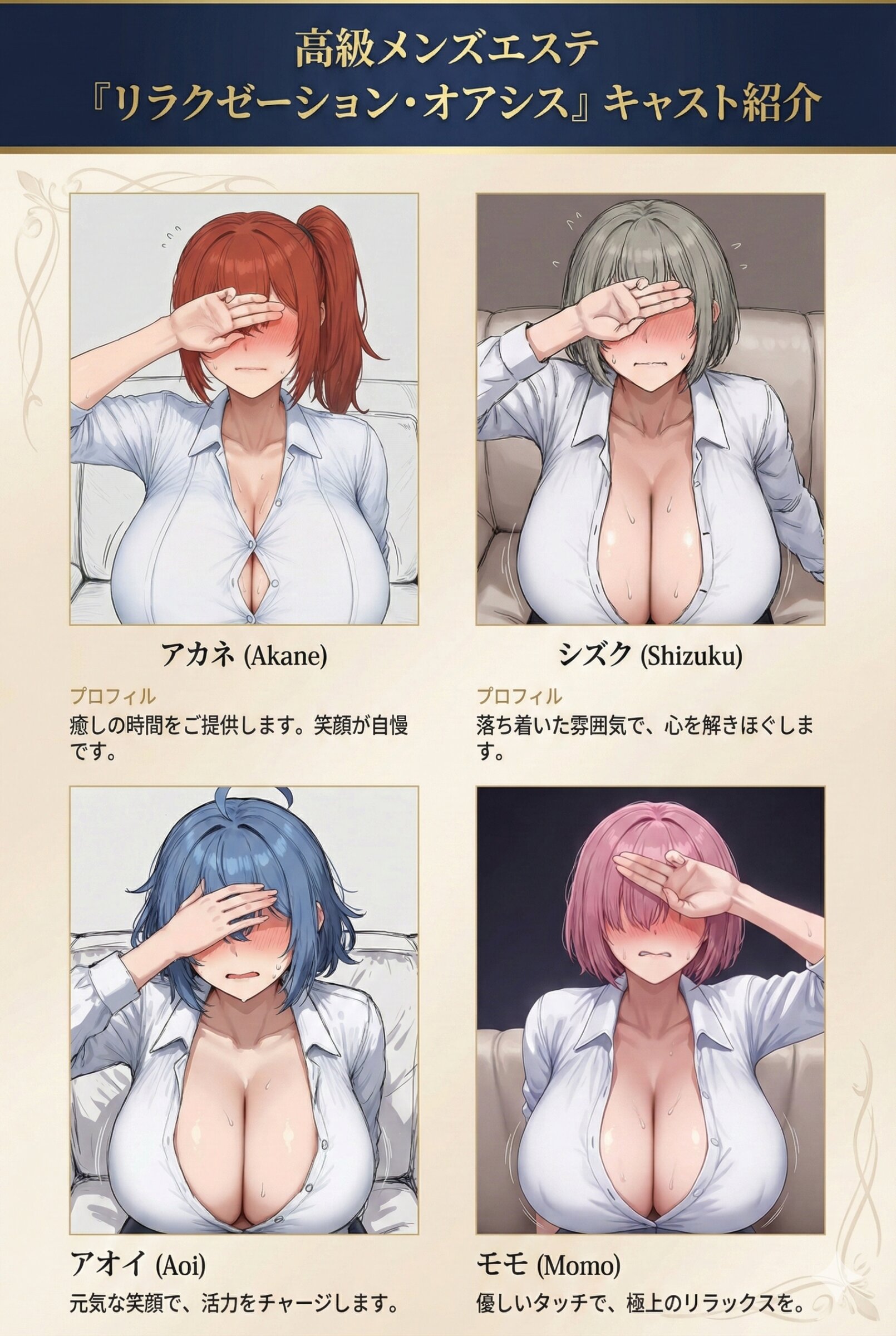 メンエスキャスト表 かぜあか 2025/11/28使用したAI Gemini/Nano Banana 年齢制限 R-15 いいね3 シェア #メンズエステ #メンエス #風俗 #巨乳 #キャスト表 #Gemini #Grok Geminiは賢いですね プロンプト なし コメント 送信 かぜあか 2025年9月より活動開始 35投稿0フォロー4フォロワー Grokを崇めよ フォローする 他の作品 全てを見る ヤク切れ 金ビキニ脇見せ蹲踞 脇見せ蹲踞 ワイシャツ巨乳 廻 Grokの存在が認められた記念 虹 金曜はチアコスらしいので メイドさん チアコス娘 ショタ食ってそうな金ビキニ2 乳巫女修行 ショタ食ってそうな金ビキニ 遅れてきたハロウィン 幽霊 遅れてきたハロウィン 魔女 頭撫で撫で 冬なので競泳水着 ぱつぱつセーター もっと見る