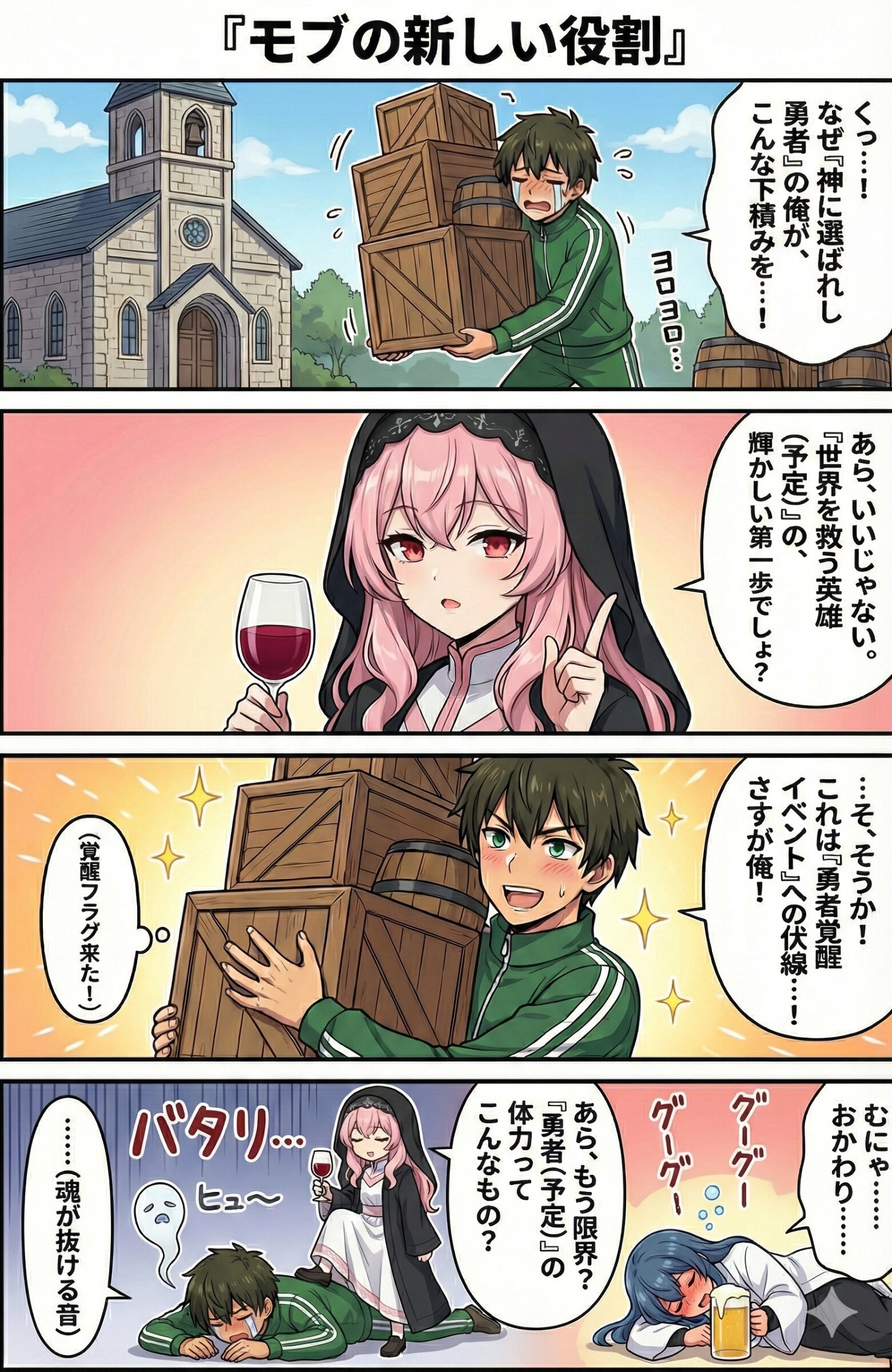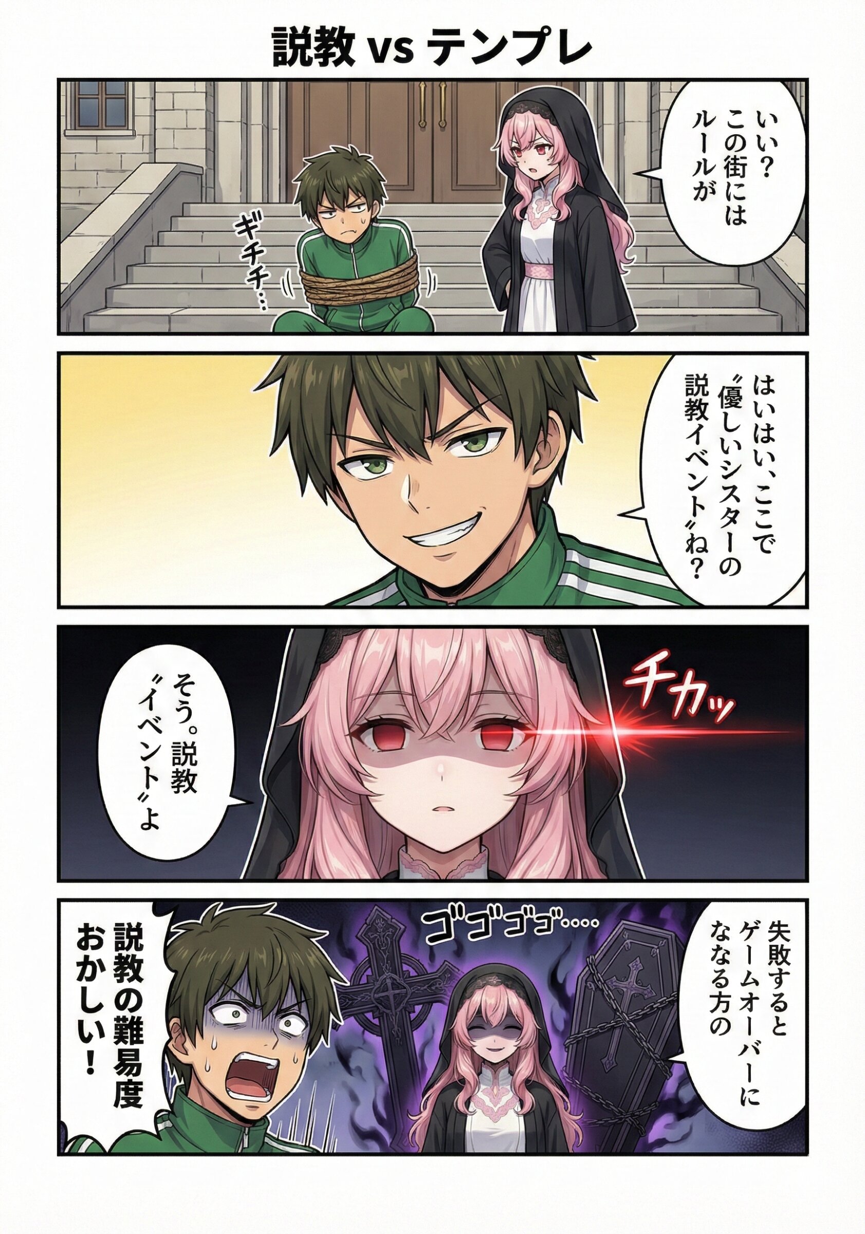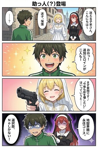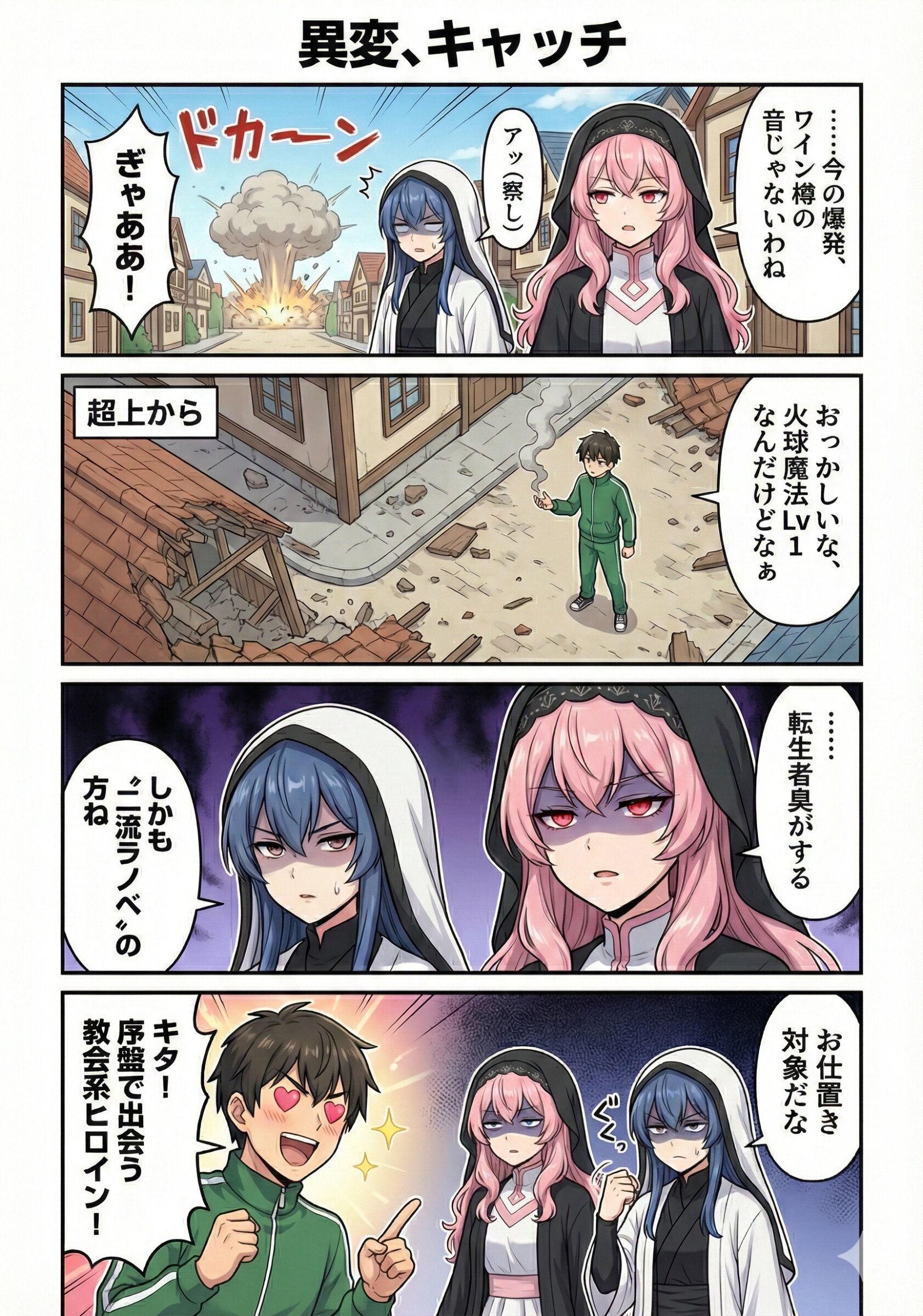 シスター達の4コママンガ➀ 華燦風鈴 2025/11/30使用したAI Gemini/Nano Banana 年齢制限 全年齢 いいね7 シェア #まともじゃないシスター #ベール #4コママンガ まともじゃないシスター達の4コママンガ第1弾毎週火、金、日の週3ペースで10本4コママンガ制作する予定です プロンプト なし コメント 送信 華燦風鈴 2023年11月より活動開始 126投稿42フォロー44フォロワー よろ フォローする 他の作品 全てを見る まともじゃない修道院のキャラシート 殺意の修道院 おは動画 4人の修道院 メイド喫茶でバイト 読書 派手な服 おはイラスト3日目 感謝のイラスト 変態の理想 おはイラスト3日目 おはイラスト2日目 おはイラスト1日目 ごちゃ混ぜファッション 「太陽の化身八咫烏、誕辰の饗宴」 感情なき少女➀ 「Empress of Eternal Dusk 〜宵闇に潜む魔姫〜」 八咫烏と風呂 もっと見る