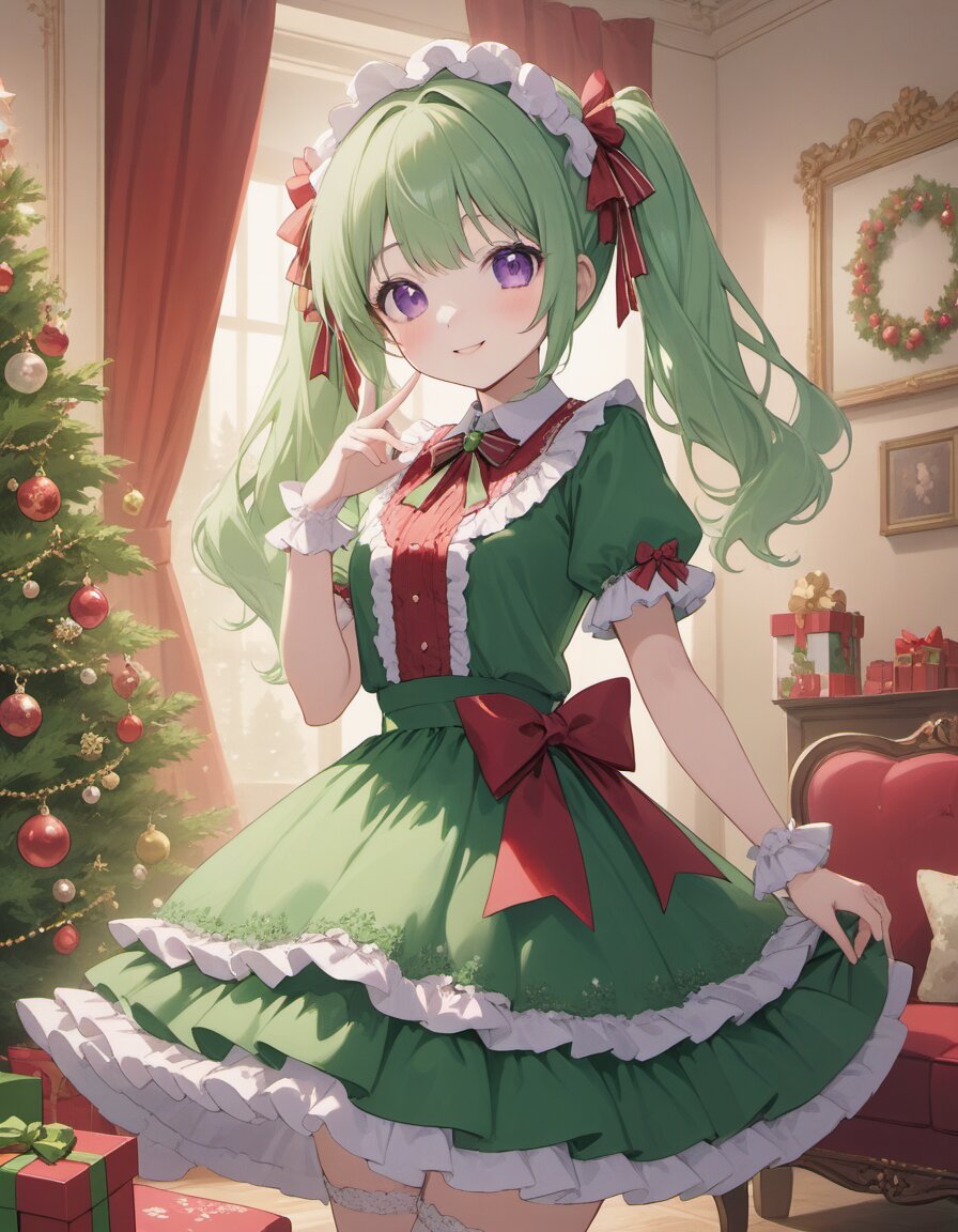 それなら自分が…と言っても衣装部分 ”Sweet Lolita, Red and light green outfit, Lolita fashion with a red and green theme and Christmas-inspired designs” だけしか書いてないんだけどね(笑)