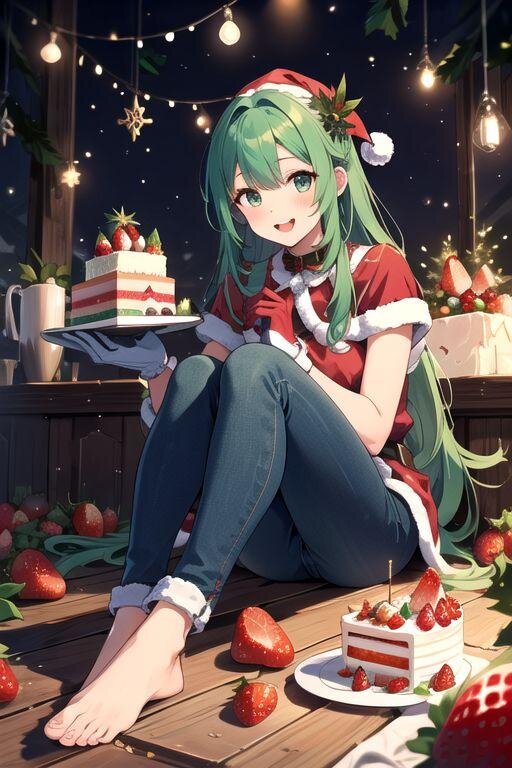 素足緑髪サンタ娘とケーキとイルミネーション Amami 2025/12/2使用したAI その他 年齢制限 全年齢 いいね8 シェア #クリスマスの準備 #火曜のAIフードコート #ケーキ #イルミネーション #緑髪 #裸足 #ジーンズ #サンタ娘 プロンプト なし 2件のコメント 伊集みかん 2025/12/02 20:43 岐阜の「美人姫」という品種が1粒70グラムくらいあるそうですが、1粒12,000円だそうです。ここで問題ですこのケーキはホールでいくらするでしょうか? 夏樹 2025/12/02 18:03 メッチャデカイイチゴが乗ったケーキ…たしかどこぞの特産品のイチゴで1粒で50グラム以上のサイズ(ほぼ子供のこぶしくらいの大きさ)のブランドイチゴがあったような。このケーキのご相伴にあずかれる方は幸せですね。 送信 Amami 2023年12月より活動開始 445投稿50フォロー54フォロワー Amamiです。(Xやpixivの「AI Amami」) Spellaiを用いて、ノエルちゃん、リツハちゃんといったサンタ娘や素足の少女をメインに投稿してます! Xやpixivより投稿頻度は少なめですが、彼女たちの世界を発信できるようにしたいです。 よろしくお願いします。 フォローする 他の作品 全てを見る 始祖サンタ娘とチーズケーキ 素足のチアリーダー 緑髪少女 夜にて素足にジーンズの緑髪サンタ娘とクリスマスケーキ クリスマスケーキを作ったリツハちゃん クリスマスケーキを作った素足緑髪サンタ娘 素足にジーンズの緑髪サンタ娘 森にて素足にジーンズの緑髪少女 海にて素足にジーンズの青髪少女 素足のチアリーダー ノエルちゃん ノエルちゃんと様々なケーキ 素足のOLとクリスマスツリー ノエルちゃんとホイップを乗せたプリン 素足にジーンズの金髪ツインテ少女 素足にジーンズの金髪ツインテ少女 素足にジーンズの緑髪サンタ娘と苺のケーキ 素足のチアリーダー 緑髪少女 ピザを食べるリツハちゃん ノエルちゃんと熟成ワイン もっと見る