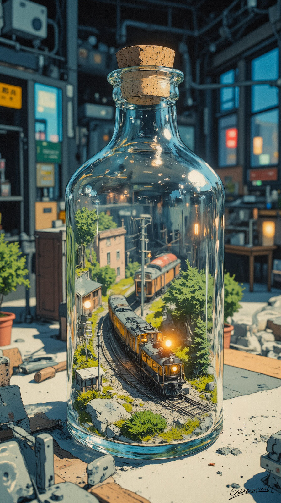 ボトルの中を走る小さな鉄道 / スマホ壁紙アーカイブ