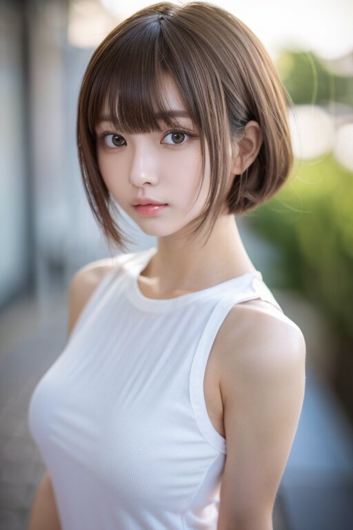 masterpiece, RAW photo, hyper detailed, 16K, extremely detailed CG, Japanese woman, 23yo, ((solo)), cute, pretty, hyper detailed eye, hyper detailed face, medium hair, bangs, extremely detailed, thin, tall, perfect anatomy, good proportion, extremely detailed body, perfect proportion, shirt, miniskirt, hyper detailed background,