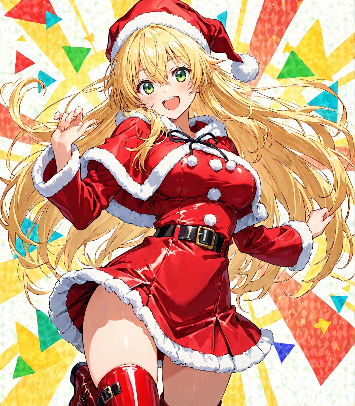 キラキラのサンタ衣装のイラストありがとうございます。元気な笑顔のサンタさんがとても可愛いです。