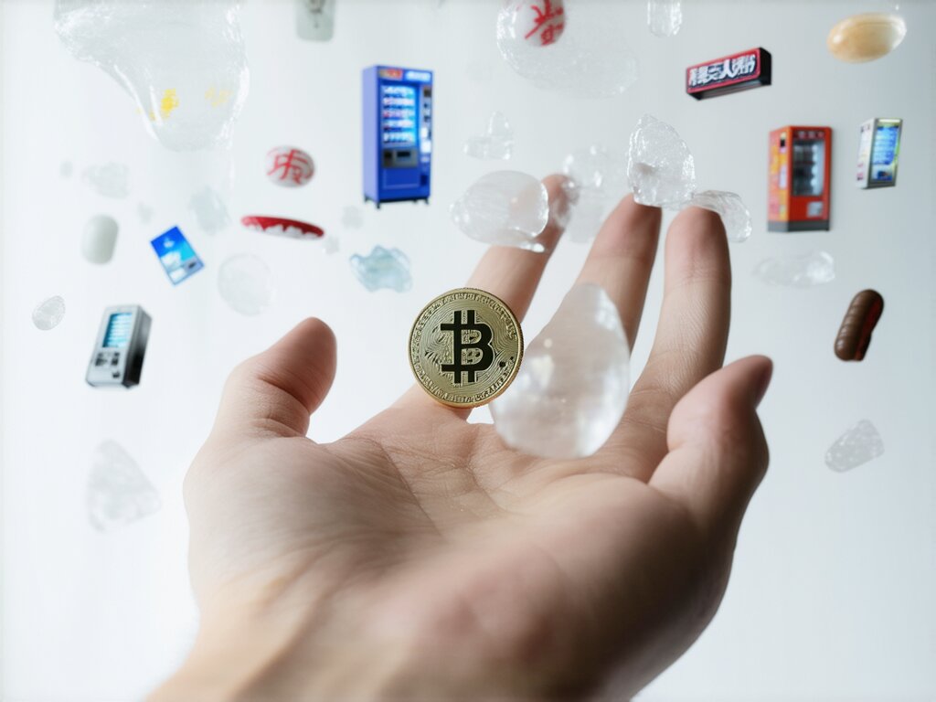 A single Japanese hundred-yen coin rests at the center of a human palm. Surrounding that hand, like a mirage, float various items that can be bought for a hundred yen. Products from vending machines, game centers, and dollar stores. They appear as translucent, ethereal forms, suspended in the air around the coin. There, a sense of choice and possibility lingers.