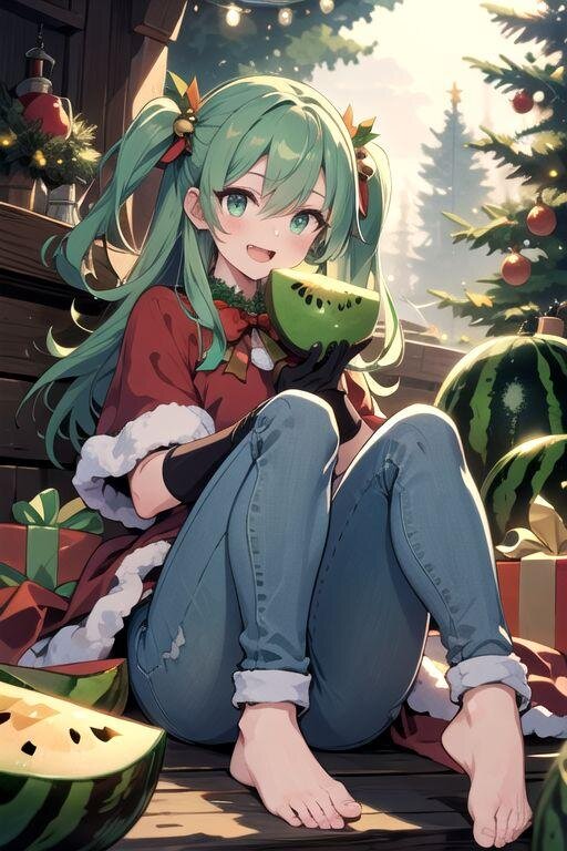 リツハちゃんとクリスマスのスイカ Amami 2025/12/6使用したAI その他 年齢制限 全年齢 いいね7 シェア #リツハ #クリスマスの準備 #スイカ #裸足 #ジーンズ #緑髪 #サンタコス 毎月6日恒例のメロンの日ということだが、リツハちゃんはクリスマスの準備としてメロンを注文したが、ウォーターメロン、つまりスイカが届いてしまった… プロンプト なし 2件のコメント 夏樹 2025/12/06 17:26 大きなスイカが美味しそう。色的には赤と緑でメロンよりスイカの方がクリスマス向き? 伊集みかん 2025/12/06 17:05 その巨大スイカも、もしかしてとんでもなく高価なやつですね。リツハさんどんだけリッチなんすか? 送信 Amami 2023年12月より活動開始 448投稿50フォロー55フォロワー Amamiです。(Xやpixivの「AI Amami」) Spellaiを用いて、ノエルちゃん、リツハちゃんといったサンタ娘や素足の少女をメインに投稿してます! Xやpixivより投稿頻度は少なめですが、彼女たちの世界を発信できるようにしたいです。 よろしくお願いします。 フォローする 他の作品 全てを見る リツハちゃんとクリスマスツリー ノエルちゃんとクリスマスツリー 始祖サンタ娘とチーズケーキ 素足のチアリーダー 緑髪少女 夜にて素足にジーンズの緑髪サンタ娘とクリスマスケーキ クリスマスケーキを作ったリツハちゃん 素足緑髪サンタ娘とケーキとイルミネーション クリスマスケーキを作った素足緑髪サンタ娘 素足にジーンズの緑髪サンタ娘 森にて素足にジーンズの緑髪少女 海にて素足にジーンズの青髪少女 素足のチアリーダー ノエルちゃん ノエルちゃんと様々なケーキ 素足のOLとクリスマスツリー ノエルちゃんとホイップを乗せたプリン 素足にジーンズの金髪ツインテ少女 素足にジーンズの金髪ツインテ少女 素足にジーンズの緑髪サンタ娘と苺のケーキ もっと見る