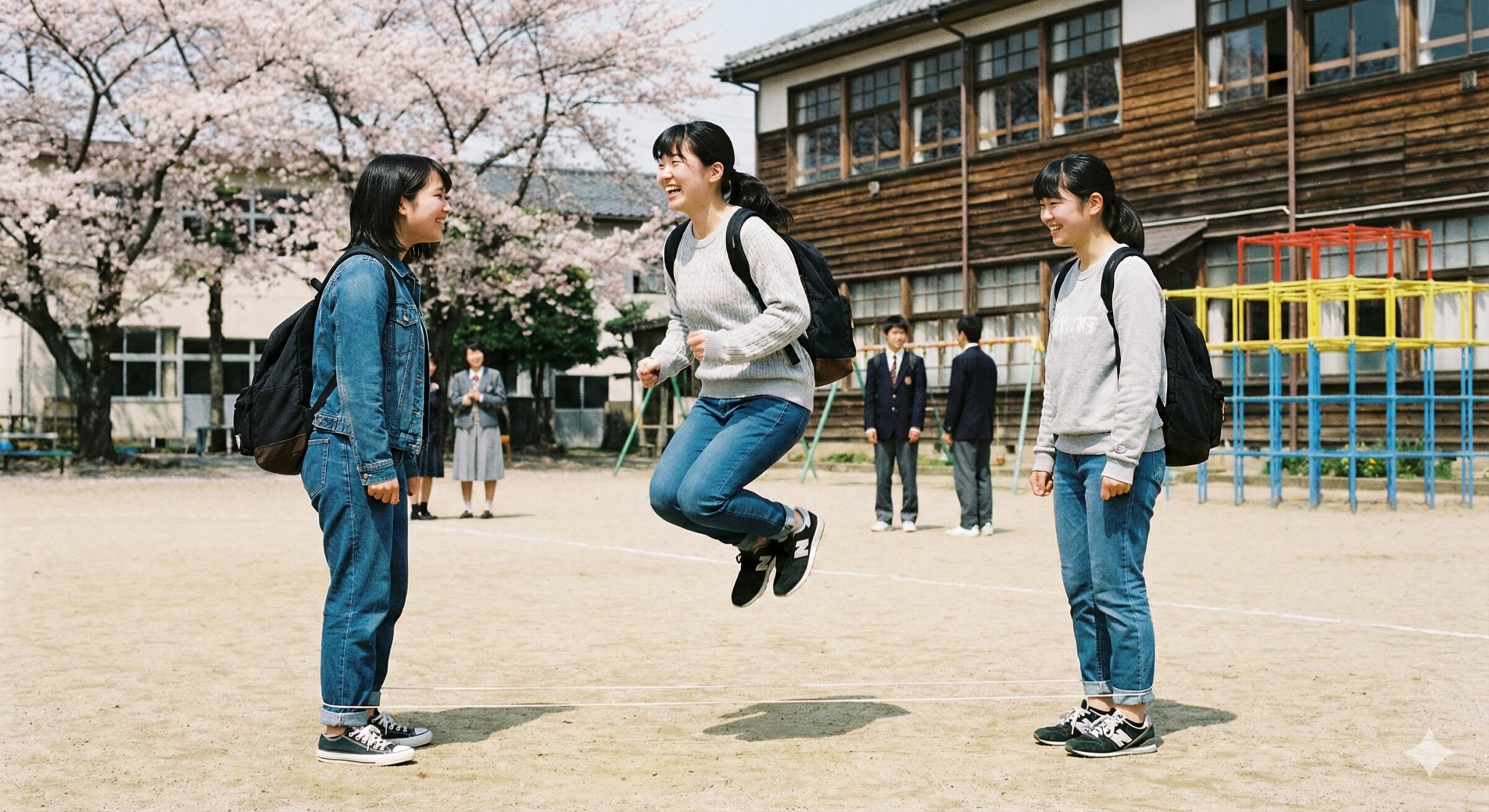 母校の校庭で遊ぶ卒業生 Dreamy 2025/12/7使用したAI Gemini/Nano Banana 年齢制限 全年齢 いいね3 シェア #レトロ ゴム跳びをして、卒業した学校の思い出がいろいろとよみがえる。そんなレトロな遊びを通じて懐かしむ様子を写真に。生成・・・ゴム跳びのイラストが前に出来たので、それを元に登場人物とスタイルを変更。 プロンプト なし コメント 送信 Dreamy 2025年12月より活動開始 16投稿45フォロー22フォロワー 絵心がなかったのでAIで作れることで、楽しんでます。 フォローする 他の作品 全てを見る レトロな暖をとる機器。懐炉。 冷え込んだ日は、温かいコーヒーが飲みたくなる ゴム跳び、ゴム段 クリスマスプレゼントの包装をするおもちゃ屋さん 働くわたしの秋モノ。 R15・肩出しニット。写真集撮影風。 R15・大忙しのケーキ屋さん レトロな音楽再生はカセットテープ。 内部は整備完了。走行装置も飛行装置も万全です 100年前のモダンガール。 昭和レトロを楽しむ 大忙しのケーキ屋さん サンタへの手紙 古い記録のメロディー