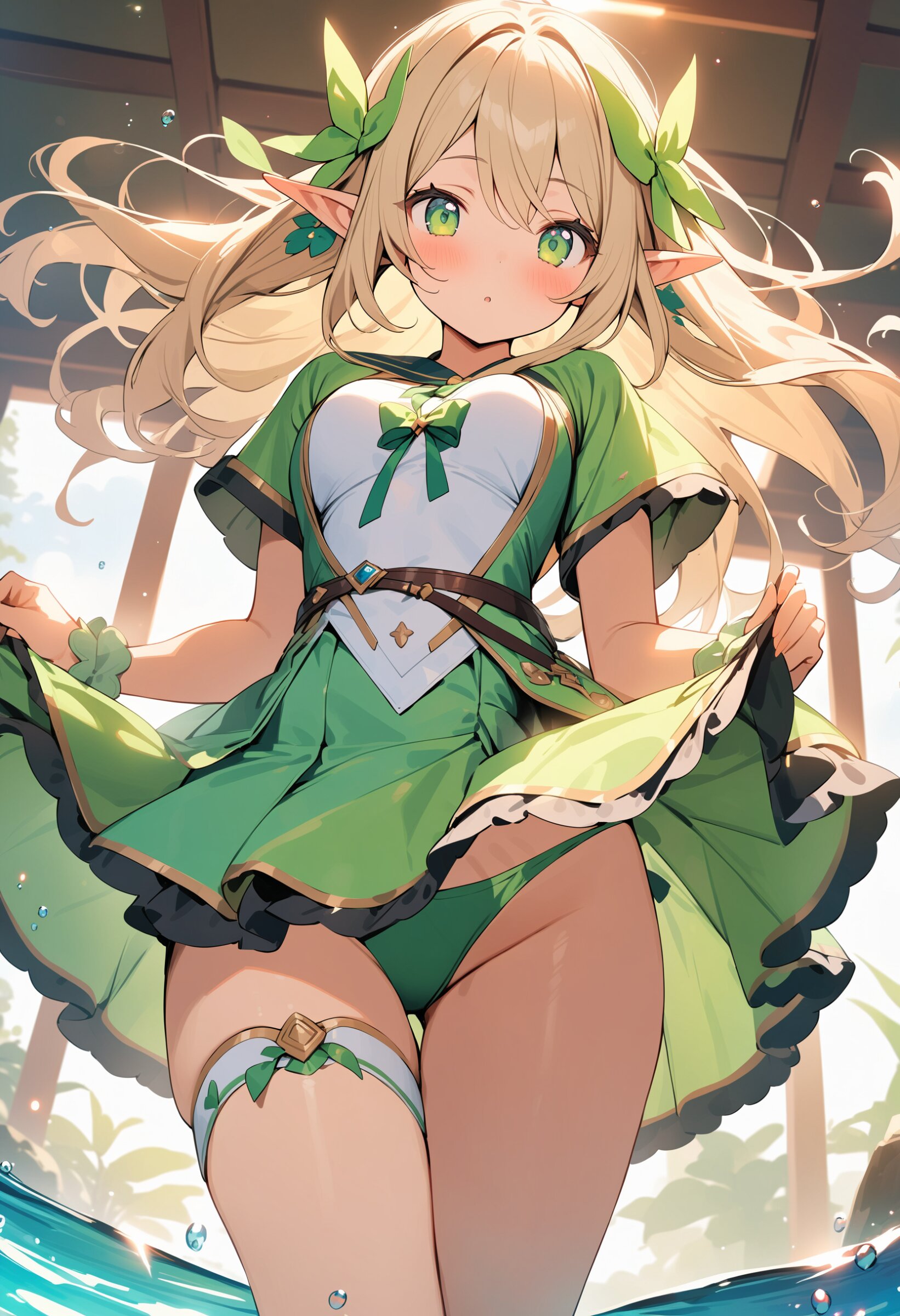 ((masterpiece)), ((best quality)), ((kawaii)), cute, (lovely), ((extremely detailed)), (beautiful), dynamic angle, a cute girl, 1girl, solo, ((elf )),beautiful blond hair, beautiful green eyes, ((beautiful eyes)), long hair, fantasy clothes,
