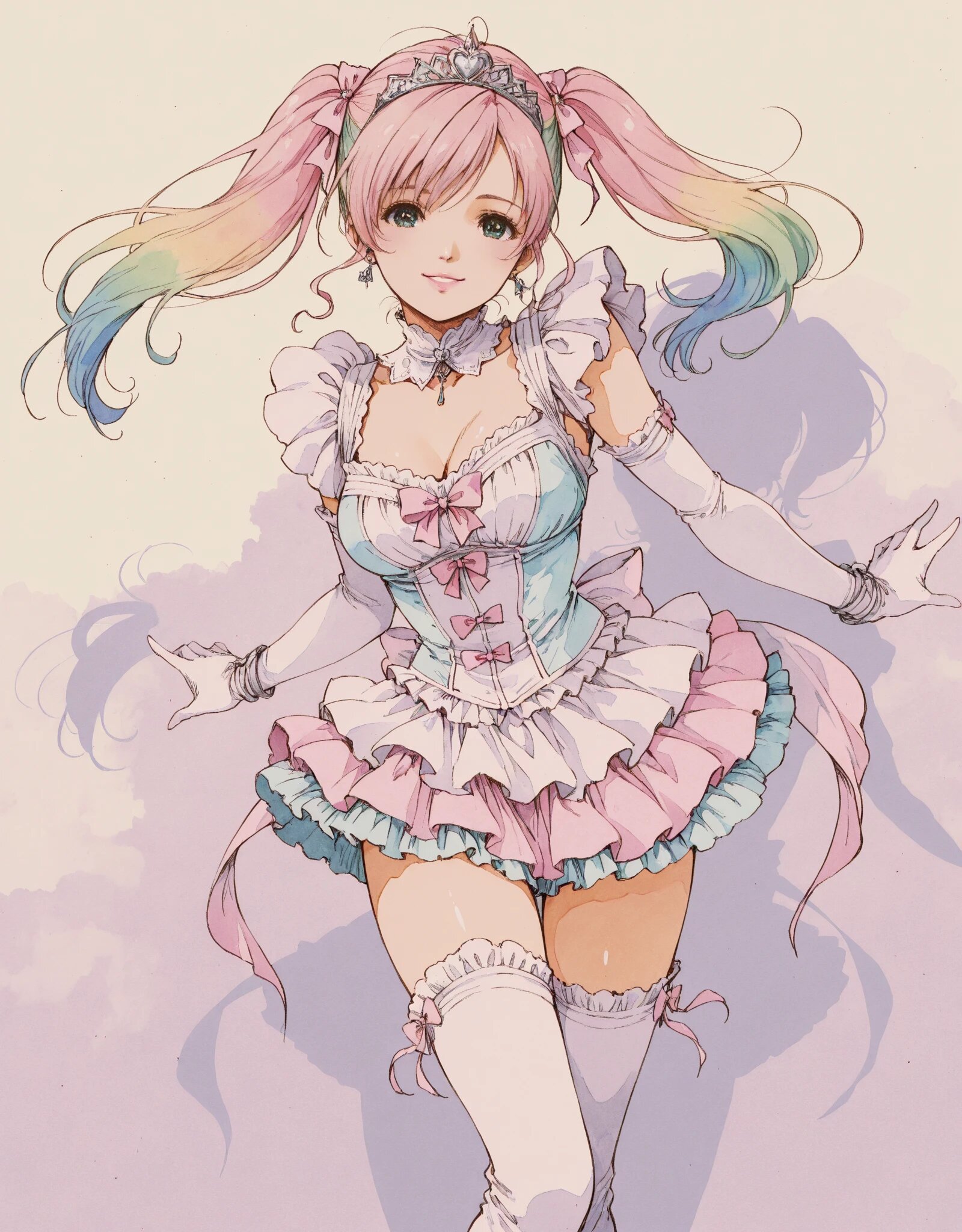 Dreamy Aurora Idol 竜胆-Rindou-@AI_Art 2025/12/10使用したAI Stable Diffusion XL 年齢制限 全年齢 いいね12 シェア #竜胆オリジナル #水彩画風 虹色の風がそっと髪を揺らし、笑顔が世界を照らす。今日はちょっとだけ、夢みたいに優しい色をまとって💗 プロンプト なし 2件のコメント せきチャソ 2025/12/10 22:01 みんなに夢を与えるまさにアイドル♪照明に照らされたら、揺れる髪が虹色に輝いて綺麗そうですね💕 きよりん 2025/12/10 13:02 フリフリの服装といいティアラ?といい、めっちゃアイドルしてます❤️可愛い😍 送信 竜胆-Rindou-@AI_Art 2025年2月より活動開始 167投稿106フォロー243フォロワー はじめまして(*´-ω-))ペコリ 竜胆(リンドウ)といいます。 まだまだ初心者の域を出ておりませんが、楽しんでイラストを生成しつつ、成長して行けたらと思います。どうぞよろしくお願いします«٩(*´ ꒳ `*)۶» フォローする 他の作品 全てを見る 光と影のエルフ。あなたはどちら? ニットと黒姫 ニットと陽向葵 華金の午後にエールを📣 ニットと澪(本日のおすすめテーマ) 狐の神主、その名は葛葉、という。 ディードリットのファンアート ひとりと一匹、それでも満ちる朝 ※ショートストーリー付 里中千枝のファンアート 天城雪子のファンアート 陽向葵、某狩りゲームで熱狂する ディードリットのファンアート 午後もがんばってね! その名はピロテース ※ショートストーリー付 澪、今日も朝から。 ※ショートストーリー付 空条徐倫のファンアート レゼの、気まぐれモーニング ※ショートストーリー付 白銀の朝、白銀のキミ もっと見る