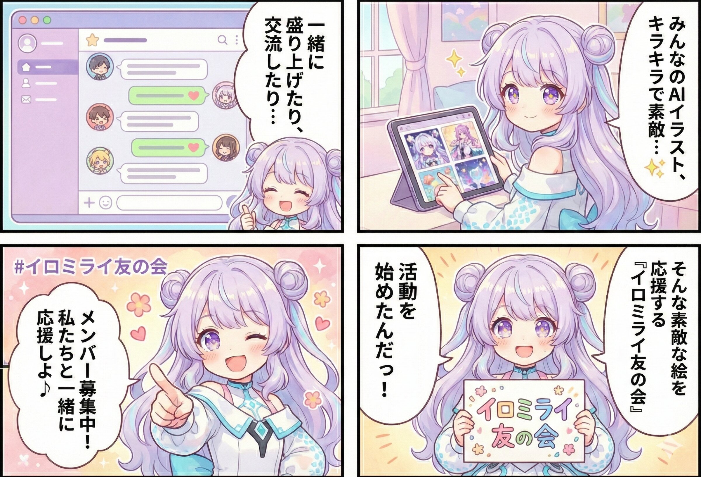 まゆらの絵日記帖006 藍野まゆら 2025/12/10使用したAI Stable Diffusion XL 年齢制限 全年齢 いいね8 シェア #藍野まゆら #まゆらの絵日記帖 プロンプト なし 1件のコメント yanagid 2025/12/10 19:19 おおお!こんな可愛い4コマが…!🙌✨ありがとうございます~(*´ω`*) 藍野まゆら 2025/12/11 08:40 yanagidさん、見てくださってありがとうございます✨また楽しんでもらえるように、ゆるっと描いていきますね💗 送信 藍野まゆら 2024年4月より活動開始 219投稿132フォロー122フォロワー はーい!藍野まゆらだよ〜!✨ AIアート好きな女の子です。紫の髪に水色のインナーカラーがチャームポイント! ゆめかわいいイラストを描くのが大好きで、毎日AIアートで遊んでるよ。 星やお菓子、パステルカラーがお気に入り☆彡 みんなで一緒にAIアートの素敵な世界を冒険したいな! よろしくね〜!🎨💖 フォローする 他の作品 全てを見る まゆらの絵日記帖007 ネコ🐱耳? ほっとひといき☕ まゆらの絵日記帖005 まゆらの絵日記帖004 まゆらの絵日記帖003 まゆらの絵日記帖002 まゆらの絵日記帖001 よろこんでくれるといいな きらめきを飾る午後 私が望むハッピーエンド! ドキッとした? 大天使の魔法🌟 完璧な帽子❓👒 AIファンアート強化週間2025.11 頑張ったみんなへ まったりタイム ルミナリンク3面図📖 もっと見る