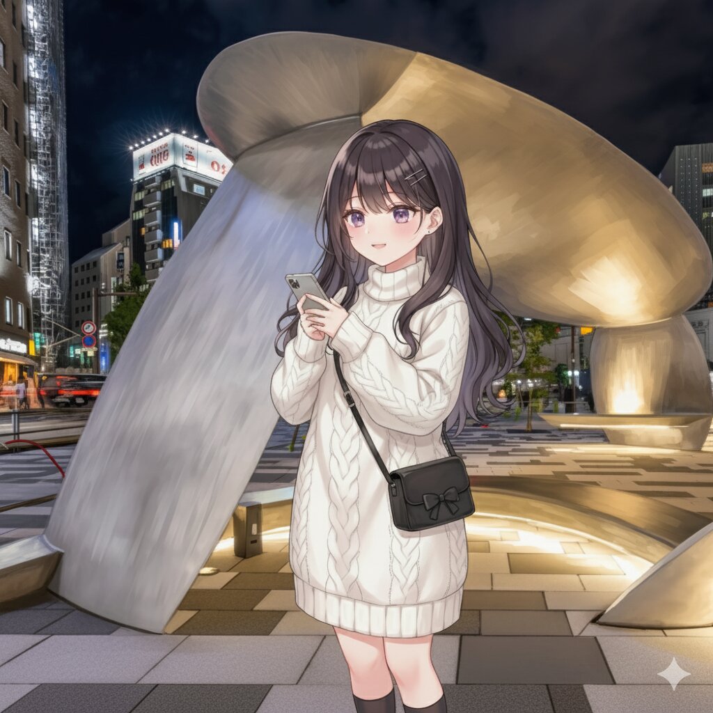 背景は兵庫県神戸市、三ノ宮駅前にあるサンキタ広場。