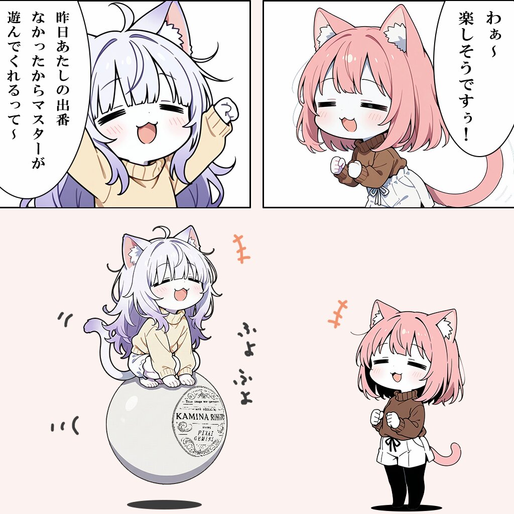 桃猫ちゃんと紫猫ちゃん カミナリヒト 2025/12/12使用したAI その他 年齢制限 全年齢 いいね8 シェア #ケモ耳 紫猫ちゃん「わぁ~✨ฅ(๑╹ω╹๑)ฅ」桃猫ちゃん「楽しそうですぅ~✨ ٩(ˊᗜˋ*)و」金曜日の桃猫 プロンプト なし コメント 送信 カミナリヒト 2025年1月より活動開始 534投稿58フォロー61フォロワー 京子ちゃん「うちのマスター、AIイラストクリエイターやねん。よろしぅおたの申します~。」 youtube始めました。よかったら覗いてみてください。 フォローする 他の作品 全てを見る 青猫ちゃん 赤狐ちゃん 白狐さん 狐耳ちゃんと猫耳ちゃんとゾンビ婆ちゃん 金猫ちゃん 黒猫ちゃん 桃猫ちゃん 紫猫ちゃん 青猫ちゃん 青猫ちゃん 赤狐ちゃん 赤狐ちゃん 狐耳ちゃんと猫耳ちゃん「もう12月」 金猫ちゃんと緑狐ちゃん 狐耳ちゃんと猫耳ちゃん 「なわとび」 黒猫ちゃん 桃猫ちゃん 紫猫ちゃんと青猫ちゃん もっと見る