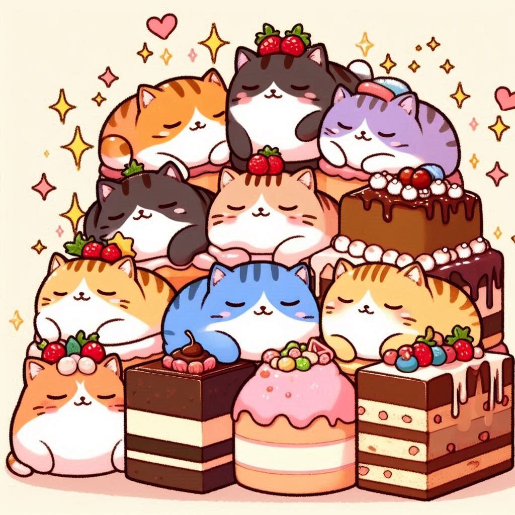 いつもより大量のごろんにゃとスイーツとのコラボ!🎂