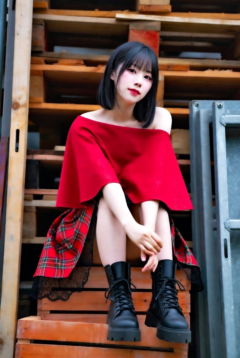 倉庫の中でワイルドな靴やまっかな衣裳。
