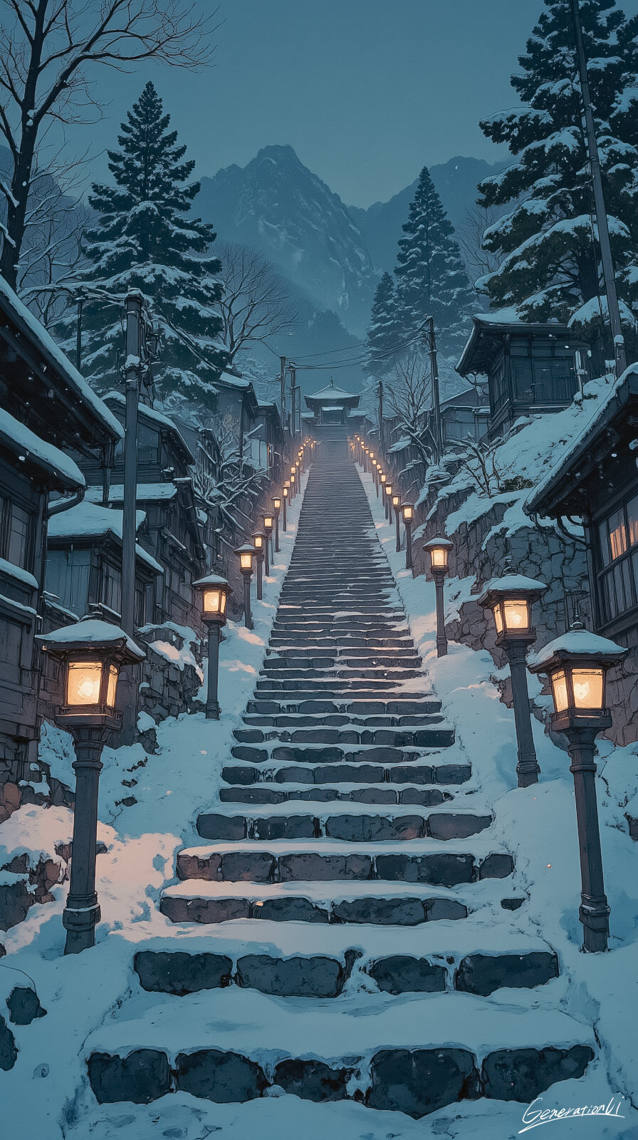 冬山へ続く灯籠の階段/スマホ壁紙アーカイブ Generation UI 2025/12/18使用したAI FLUX.1 年齢制限 全年齢 いいね5 シェア #石段 #灯籠 #参道 #雪景色 #静寂 #スマホ壁紙 #物語 #オリジナル 【冬山へ続く灯籠の階段】灯りは未来の形をしていない。ただ、今ここに立つことをそっと肯定するだけだ。雪は世界を白紙に戻し、足跡さえもためらいなく消していく。それでも階段は残り、光は数を失わない。登る理由はいつも後から生まれる。最初にあるのは一段分の勇気だけ。冷たい空気の中で、希望は声を出さない。代わりに灯籠のように黙ってそこに在り続ける。だから人は気づく。希望とは遠くにある頂ではなく、今、足元を照らしているこの小さな光なのだと。 プロンプト なし コメント 送信 Generation UI 2023年1月より活動開始 305投稿0フォロー19フォロワー ✨心ときめくスマホ壁紙をAIイラストでお届けします✨ 眺めているだけで、ふと気持ちが動くようなものを目指しています💕 【受賞歴】 ・世界最大級の AI画像生成プラットフォーム Civitai 主催の国際コンテストで受賞 (グレートハロウィンコンテスト2025Gothic Glamour画像部門1位https://civitai.com/articles/22348) フォローする 他の作品 全てを見る 引っ越し荷物に海があった/スマホ壁紙アーカイブ 夕焼けに吸い込まれる線路/スマホ壁紙アーカイブ 真実はいつも雨音に紛れる/スマホ壁紙アーカイブ この時間が永遠ならいいのに/スマホ壁紙アーカイブ 本を開いたら、冒険が始まった/スマホ壁紙アーカイブ とても離陸できそうにない日/スマホ壁紙アーカイブ 雨の帰り道に滲むテールライト/スマホ壁紙アーカイブ 黄昏が私を呼んでいる/スマホ壁紙アーカイブ 光と雪が降る駅で/スマホ壁紙アーカイブ ストリート午後モード/スマホ壁紙アーカイブ 今日、少女は“伝説”と出会った/スマホ壁紙アーカイブ レンガ色の午後、風がやさしく通り抜ける街/スマホ壁紙アーカイブ 世界がオレンジに染まるとき/スマホ壁紙アーカイブ ボトルの中を走る小さな鉄道 / スマホ壁紙アーカイブ リビングに舞い降りた空のワンダーランド/スマホ壁紙アーカイブ 灰色の世界でひとつ息をする/スマホ壁紙アーカイブ 荷物より大きな夢を抱えて/スマホ壁紙アーカイブ 極赤の世界にひとつの祈り/スマホ壁紙アーカイブ もっと見る