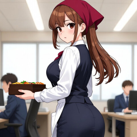 ガンさんのファンアート。プロフィールを見ると模型作りが趣味とのことで、自動車のミニチュアモデルを作ってもらった。完成させて写真をとるためにほこりを取っているシーン。
