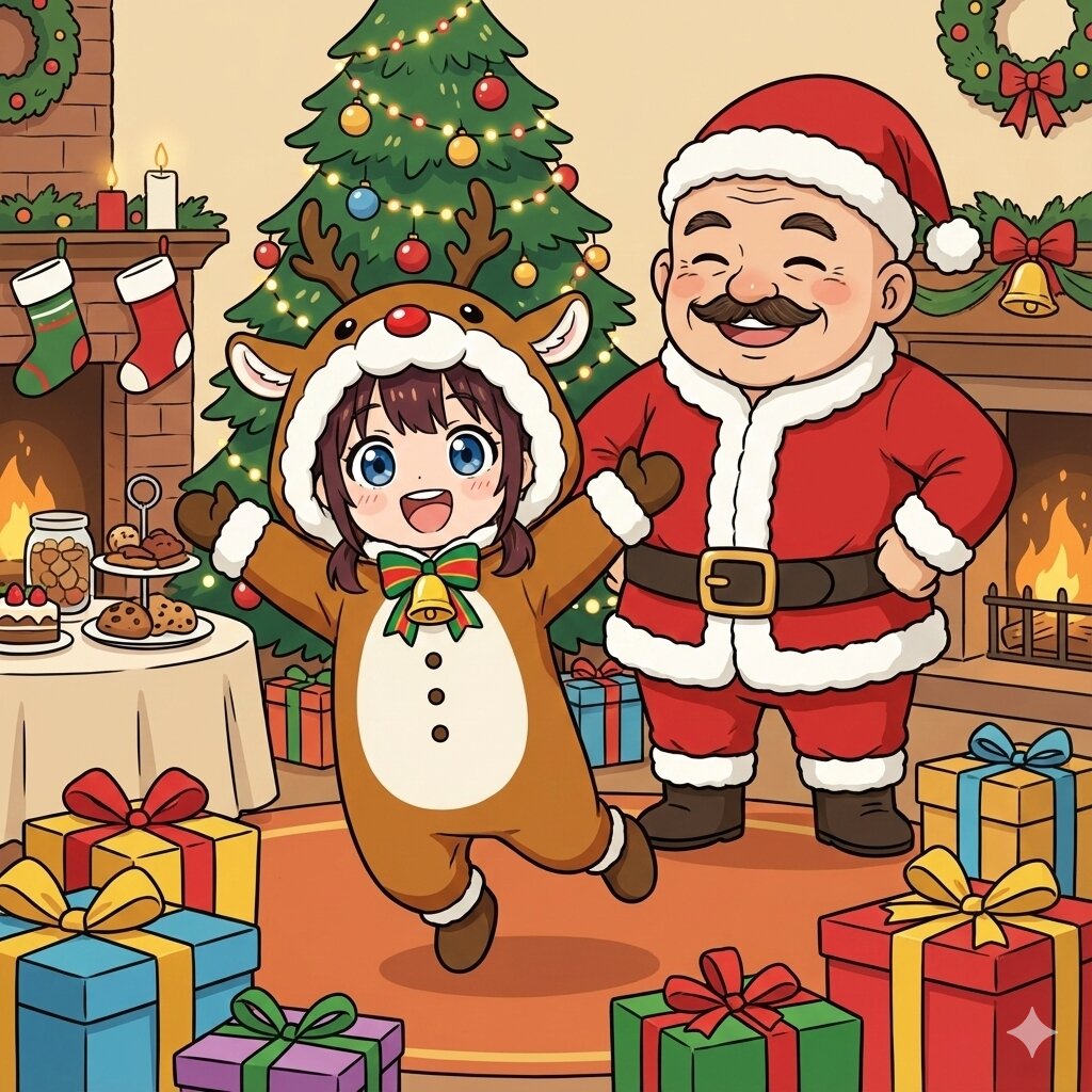 この二人のクリスマスの楽し気なワンシーン(トナカイの子がメイン)を描いて。
