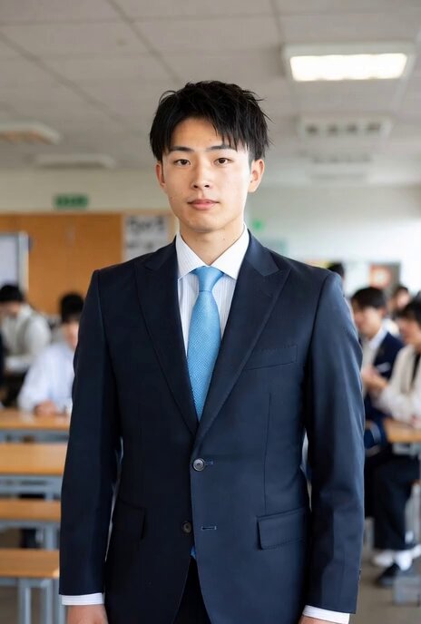 就職の相談で部の先輩に会うことになったテニス部員。着慣れないスーツを着てすこし緊張した様子。