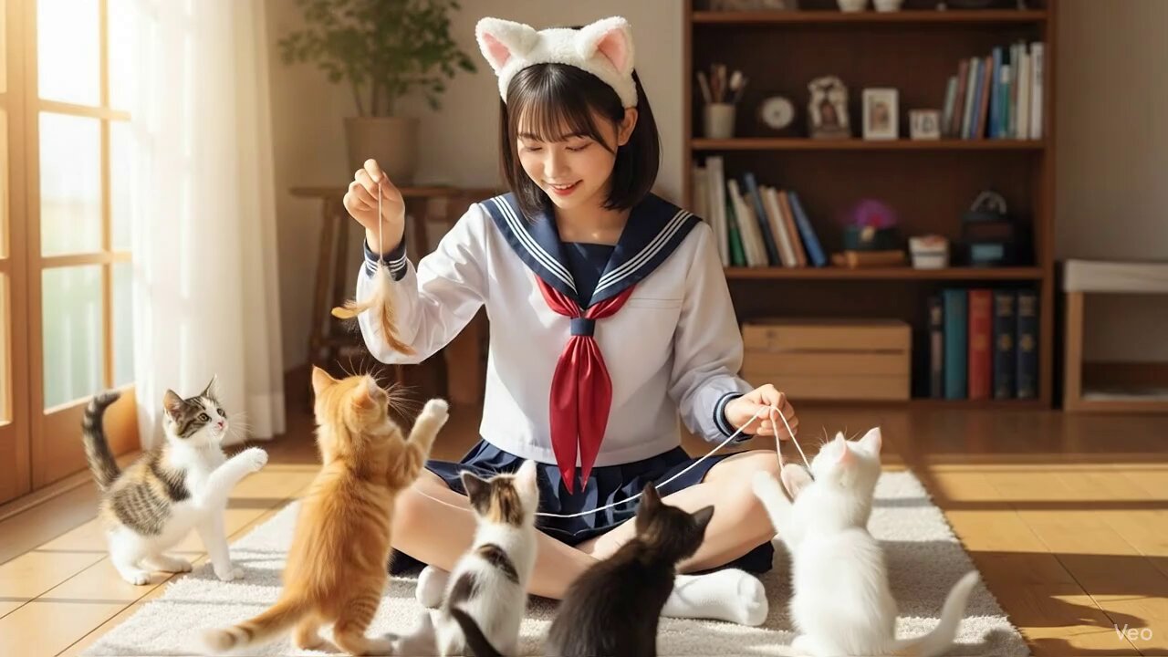 子猫ちゃんたちと娘ネコちゃん(音声あり) もも 2025/12/21使用したAI その他 年齢制限 全年齢 いいね4 シェア #女子高生 #子猫 #動画 #ネコミミ #キャプション見てね #音声付き #コメント大歓迎 可愛い子猫ちゃんと女子高生の癒し動画です。動画を投稿してみたくて。AI動画の生成は環境的にまだまだ先になるのかなぁ。なんて思ってましたが、今じゃこんなにできちゃうんですねー。自分が遅いだけでした。音声までつけてくれてるんですよ。びっくりです。でも子猫ちゃんが喉をゴロゴロ鳴らす音が気になります。 プロンプト なし 1件のコメント もも 2025/12/21 17:00 子猫ちゃんも女子高生も可愛いね。 送信 もも 2025年9月より活動開始 2投稿3フォロー3フォロワー ちちぷいをメインに活動してます。 ちちぷいは動画投稿に未対応なので、動画はこちらで投稿してみます。 フォローする 他の作品 全てを見る たまごっちの卵とじ丼《食用たまごっち》(音声あり)