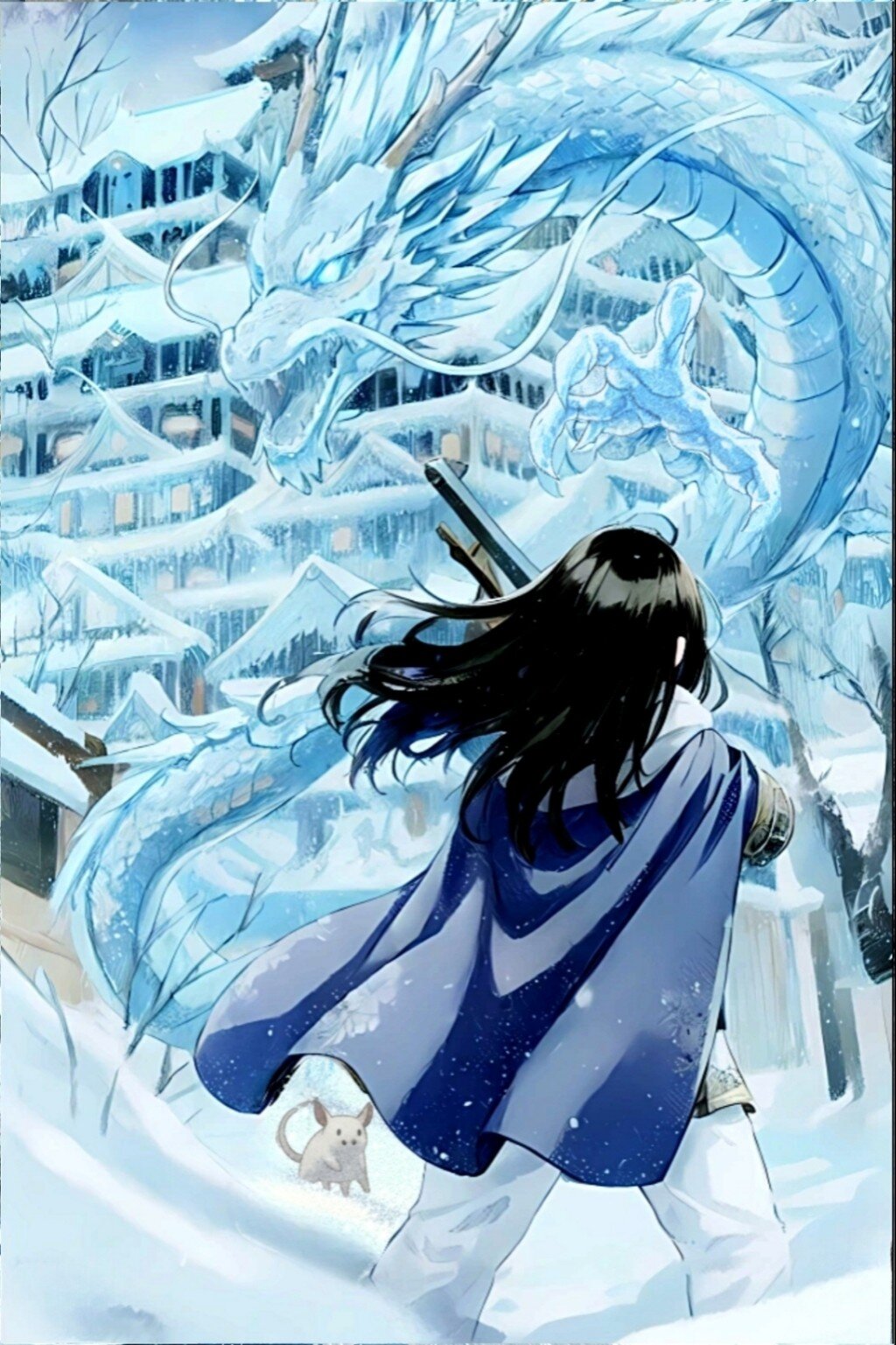 Manga style, watercolor painting, a dynamic composition of a cute 15-year-old female hunter, dashing through a snowy forest, half-buried in snow, her hair flowing with strong movement, surrounded by strange yokai and monsters in the style of Shigeru Mizuki lurking in the shadows of the trees, in a fantastic winter night setting with an old Japanese village in the background, a snowy Japanese castle floating in the distance during a blizzard.