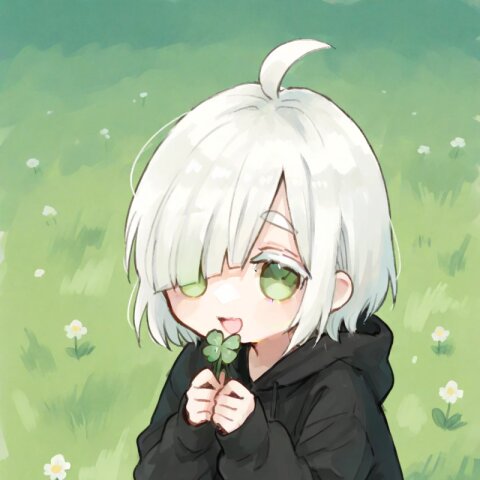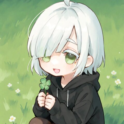 <lora:inmnstyleilxl:0.9>, ultra-detailed, best quality, masterpiece, very aesthetic, watercolor painting, general, 1boy, chibi, solo, mint green blouse, chocolate short jacket, open jacket, long sleeves jacket, wide sleeves, chocolate corset, chocolate flare skirt, golden embroidery, mint green tights, chocolate lace-up boots, gigantic golden spoon, sitting gigantic mint chocolate cake, smile, open mouth, white hair, two side up, medium hair, braid bangs, swept bangs, pale blue eyes, white colored eyelashes, :3, fang