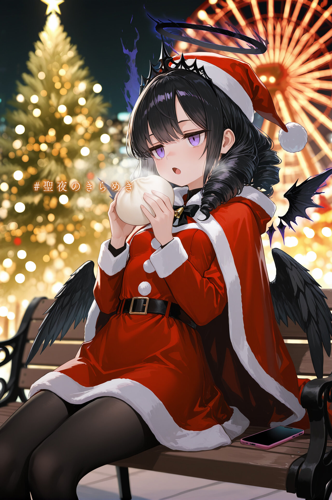煌びやかなイルミネーションを背景に、クリぼっち🎄を楽しむうちの子クロワデンヌを生成してみました(*´▽`*)