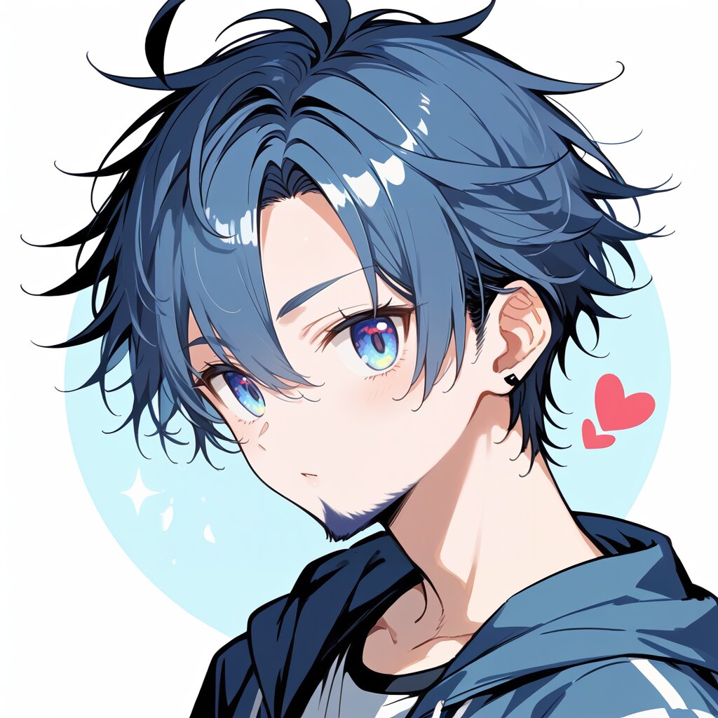 (UI Design, Icon:1.5), (Simple Design, Vector Graphics:1.5), (boy, solo, Logo:1.3), Round Border, simple minimal, silhouette, crew cut, Heart Ahoge, Silver and blue Hair, Beard,