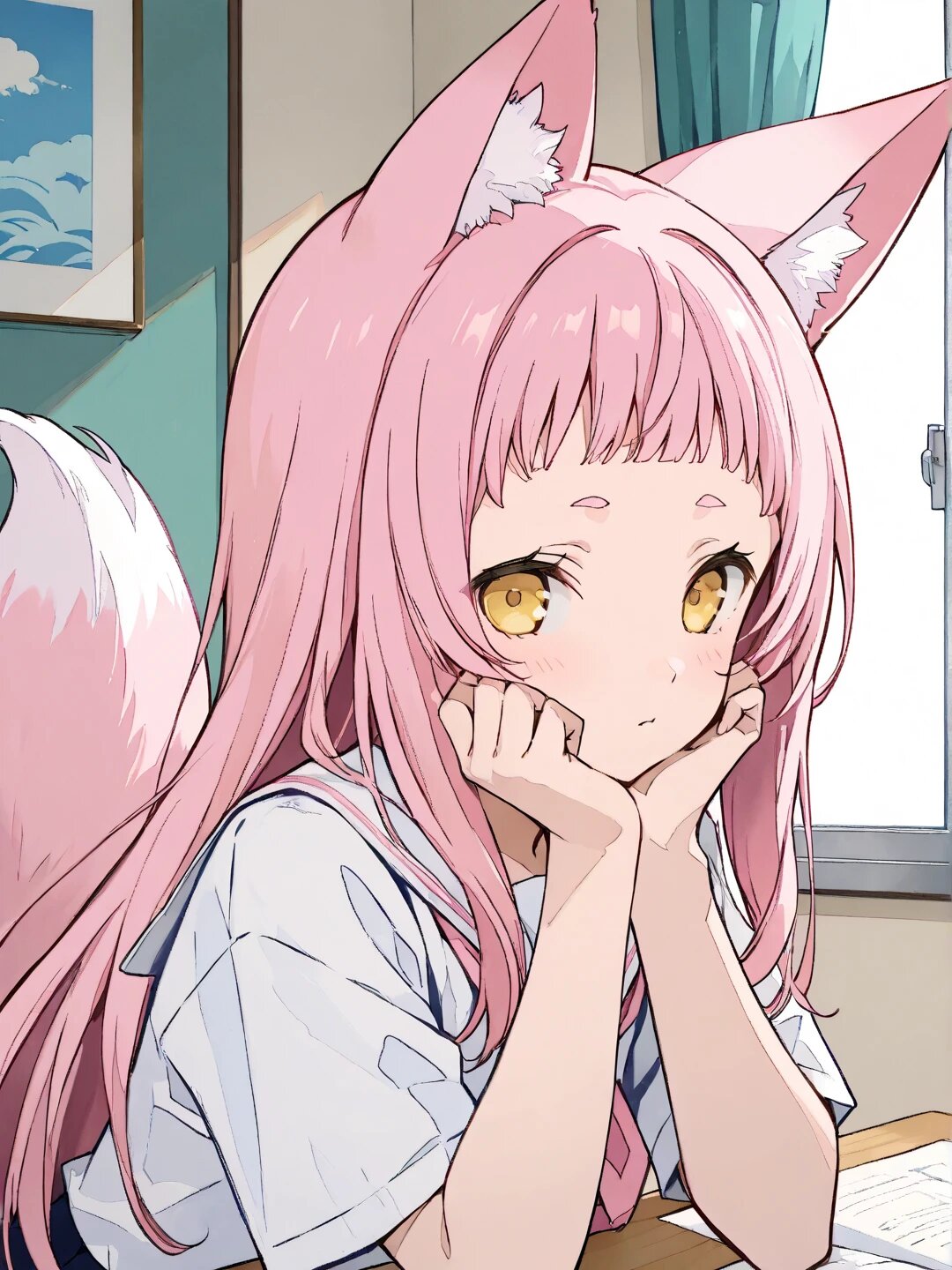 妾は肘をつき、