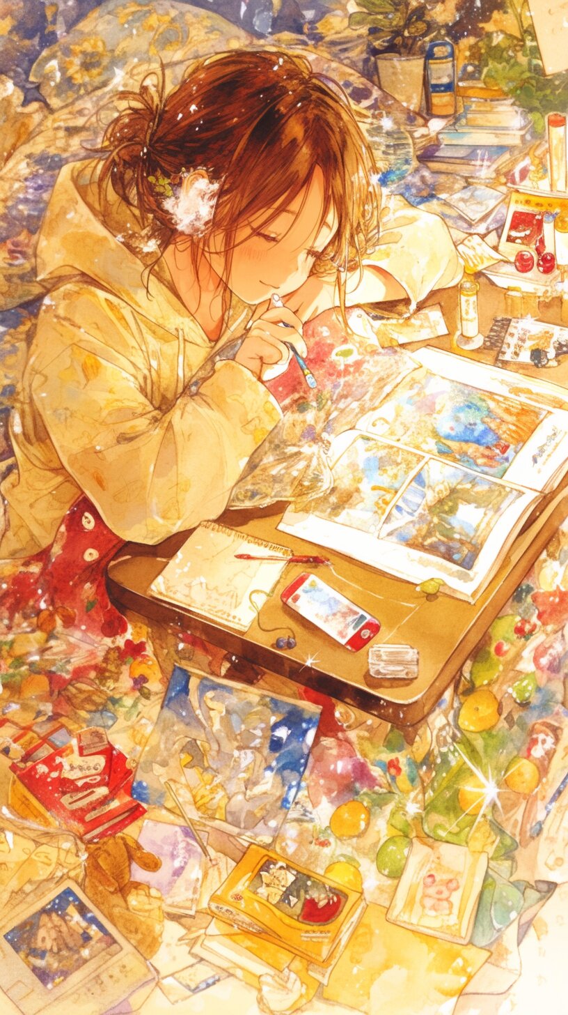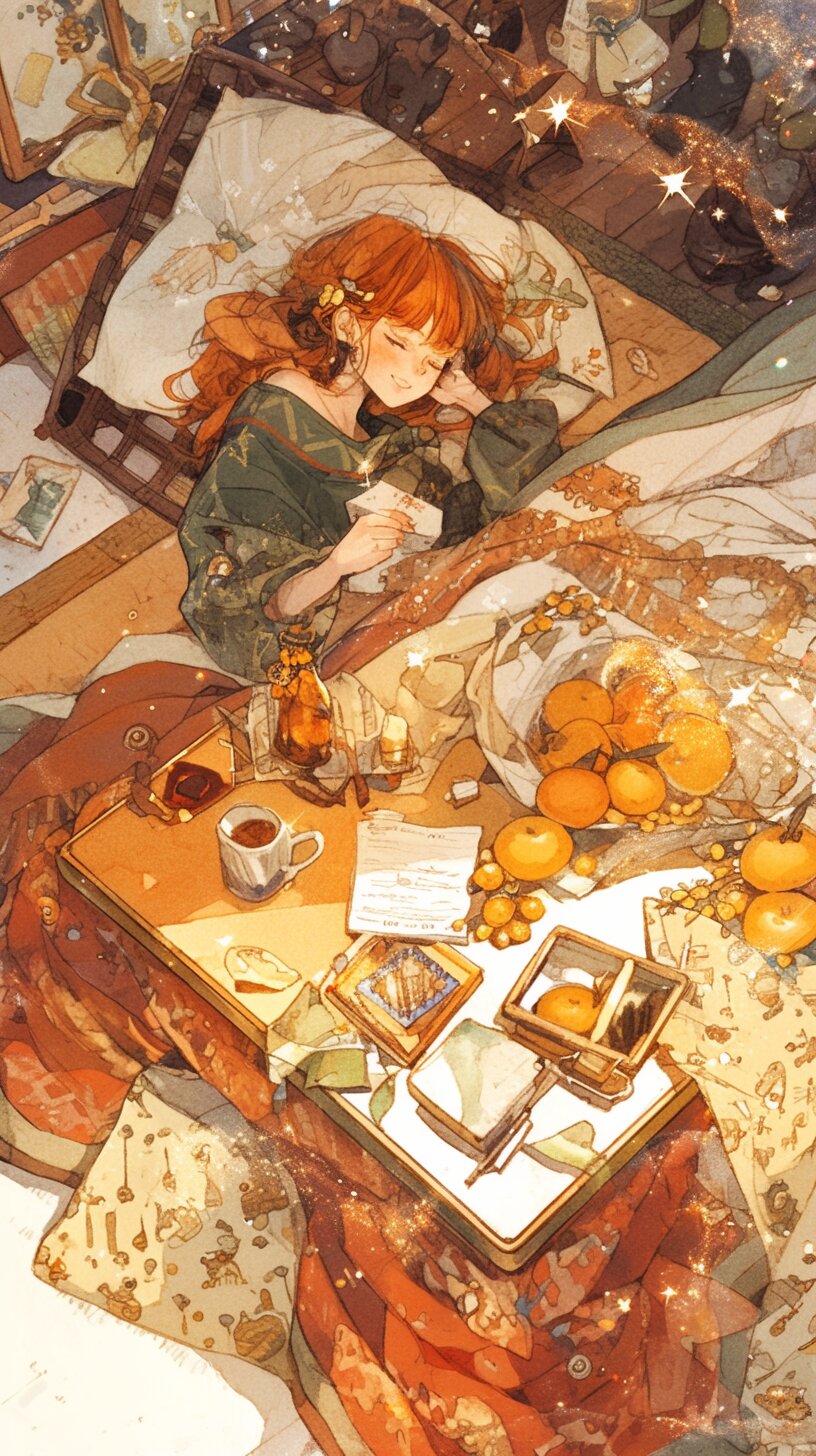 こたつでぬくぬく時間🍊 muretart 2025/12/29使用したAI niji・journey 年齢制限 全年齢 いいね5 シェア #AIゆく年くる年 #ぬくぬく時間 #時間 #冬 #こたつ #こたつにミカン #みかん #ミカン #ぬくもり #眠る プロンプト なし コメント 送信 muretart 2025年6月より活動開始 41投稿6フォロー19フォロワー ミュレと言います。ファンタジーが好きです。 フォローする 他の作品 全てを見る 年末大掃除をする魔法使い🧹 帰路の情景🌙 雪だるま作り⛄️ 聖夜の煌めく空の下で🦌 クリスマスナイトキャッツパフェ🍨 クリスマスツリーの準備している人たち🎄 クリスマス準備の冬コ-デ 冬の女の子と猫🐈 マフラーをしているキャラ🧣 帽子を被っているキャラ ブ-ツを履いてるキャラ タ-タンチェックキャラ ニットを着ているキャラ Happy Halloween ハロウィンコスプレキャラ 黒猫と魔法使いカップル ハロウィンホワイトキャッツカボチャプリン🎃 ハロウィンの夜に会話を楽しむふたりの魔法使い もっと見る