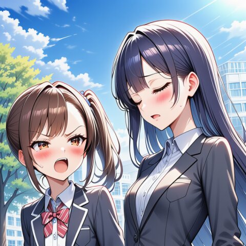 普段は引っ込み思案で人付き合いも少ない娘ですが、魔法少女に変身すると饒舌になり、どんな相手にも物怖じせずにはっきり自分の気持ちを伝えます。引っ込み思案ですが、同じ中学の先輩の彼女が居たりします。