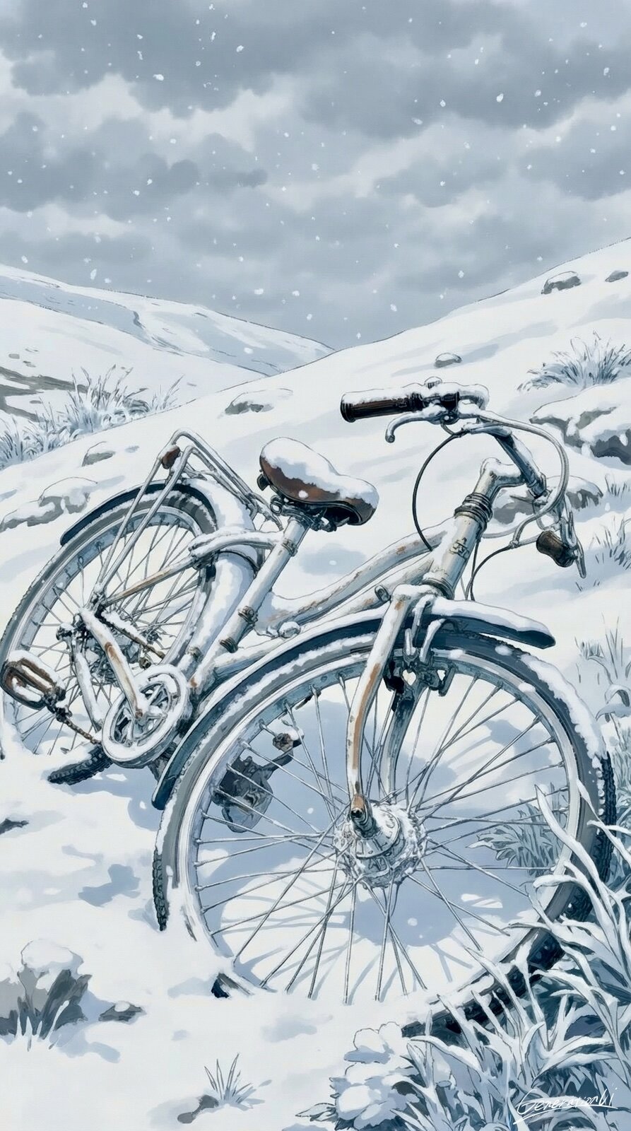 雪原の忘れ物/スマホ壁紙アーカイブ Generation UI 2025/12/31使用したAI FLUX.1 年齢制限 全年齢 いいね4 シェア #雪原 #自転車 #丘陵 #スマホ壁紙 #物語 #オリジナル 【雪原の忘れ物】その自転車は、誰かに忘れられたのではなく、雪にすべてを預けたのかもしれない。急ぐ必要も、戻る理由もなくなった午後。白い静けさが、名前も目的も包み込み、ただ「そこに在った」という事実だけを残した。春になれば、誰かが思い出すだろう。──ああ、こんな場所に、忘れ物があったな、と。 プロンプト なし コメント 送信 Generation UI 2023年1月より活動開始 330投稿0フォロー21フォロワー ✨心ときめくスマホ壁紙をAIイラストでお届けします✨ 眺めているだけで、ふと気持ちが動くようなものを目指しています💕 【受賞歴】 ・世界最大級の AI画像生成プラットフォーム Civitai 主催の国際コンテストで受賞 (グレートハロウィンコンテスト2025Gothic Glamour画像部門1位https://civitai.com/articles/22348) フォローする 他の作品 全てを見る 雨音だけが主役の夜/スマホ壁紙アーカイブ 雨が残した宝石/スマホ壁紙アーカイブ 考えごとはポケットに入れて/スマホ壁紙アーカイブ 返信のない手紙を抱えて/スマホ壁紙アーカイブ 本棚の向こうは森でした/スマホ壁紙アーカイブ 冬の女王、降臨。/スマホ壁紙アーカイブ 黄昏のフルート/スマホ壁紙アーカイブ 世界で一番小さな海洋保護区/スマホ壁紙アーカイブ 花影に包まれる横顔/スマホ壁紙アーカイブ 新年、ちょっと良い予感しかしない/スマホ壁紙アーカイブ 石橋のアーチが沈黙する冬の間奏/スマホ壁紙アーカイブ 雪の商店街に佇む一匹の猫/スマホ壁紙アーカイブ 雪と灯りと、願いの列/スマホ壁紙アーカイブ 並んだ背表紙と影/スマホ壁紙アーカイブ 同じ方向、違う人生/スマホ壁紙アーカイブ 眠らない冬のインフラ/スマホ壁紙アーカイブ この一瞬のために踊ってきた/スマホ壁紙アーカイブ スケールを間違えた神の習作/スマホ壁紙アーカイブ もっと見る