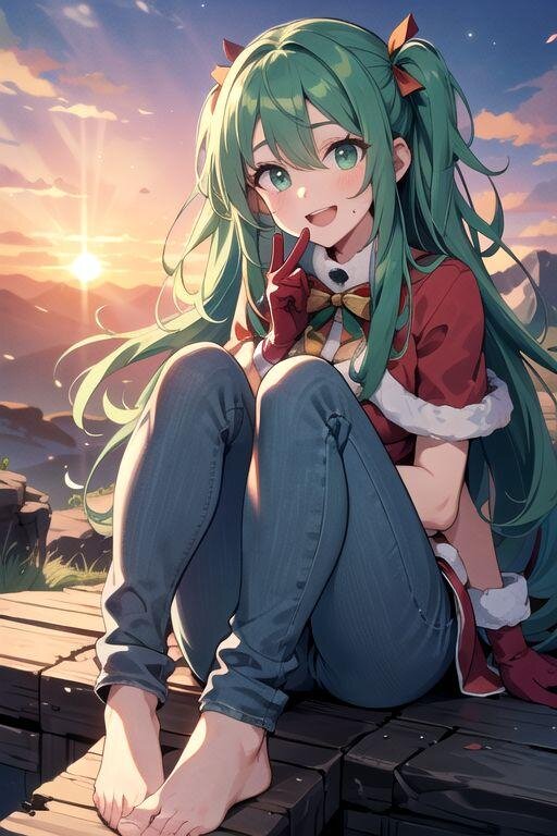 高原で初日の出を見ているリツハちゃん Amami 2026/1/1使用したAI その他 年齢制限 全年齢 いいね12 シェア #リツハ #AIゆく年くる年 #初日の出 #緑髪 #サンタコス #ジーンズ #裸足 イロミライさんの企画に参加今回のお題はHimalayan Bluetailさんによる初日の出(2枚目)高原で初日の出を見ているリツハちゃんリツハ「あけましておめでとうm(_ _)m2026年もよろしくぅ」 プロンプト なし 1件のコメント Himalayan Bluetail 2026/01/03 23:37 Amamiさん、リツハちゃん、企画へのご参加ありがとうございます( ꈍᴗꈍ)♪山々から顔を出す初日の出に息を呑みますね✨リツハちゃんの明るい未来を予感させます♪ 送信 Amami 2023年12月より活動開始 511投稿52フォロー60フォロワー Amamiです。(Xやpixivの「AI Amami」) Spellaiを用いて、ノエルちゃん、リツハちゃんといったサンタ娘や素足の少女をメインに投稿してます! Xやpixivより投稿頻度は少なめですが、彼女たちの世界を発信できるようにしたいです。 よろしくお願いします。 フォローする 他の作品 全てを見る 白猪神社へ訪れたリアラちゃん スノーボードに乗る素足緑髪サンタ娘 橇に乗ったリツハちゃん スノーモービルに乗車するノエルちゃん ノエルちゃんのおせち料理 旅館でお寿司を嗜むリツハちゃん 誕生日の始祖サンタ娘と苺のケーキ 2026/01/05 森にて素足にジーンズの緑髪少女 水色髪のプロルちゃん 森にて緑髪のリツハちゃん 2026/01/04 森にて素足にジーンズの緑髪少女 喫茶店にて素足に冬コーデの黒髪少女 ベンチに座っている素足に冬コーデの黒髪少女 犬耳のノエルちゃん 辰にちなんでアルクスちゃん ウマ(午)耳のリツハちゃんと緑の鬣のウマ リツハちゃんと富士山と鷹のぬいぐるみ 鷹の羽を持った素足のチアリーダー もっと見る