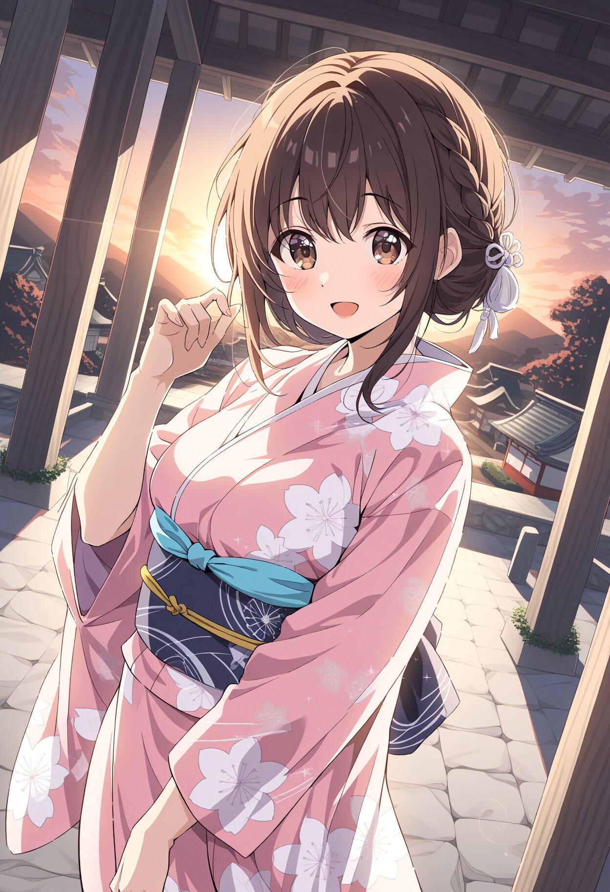 初日の出をバックに晴れ着姿のはるちゃんが輝いていますねぇ(*´▽`*)💗