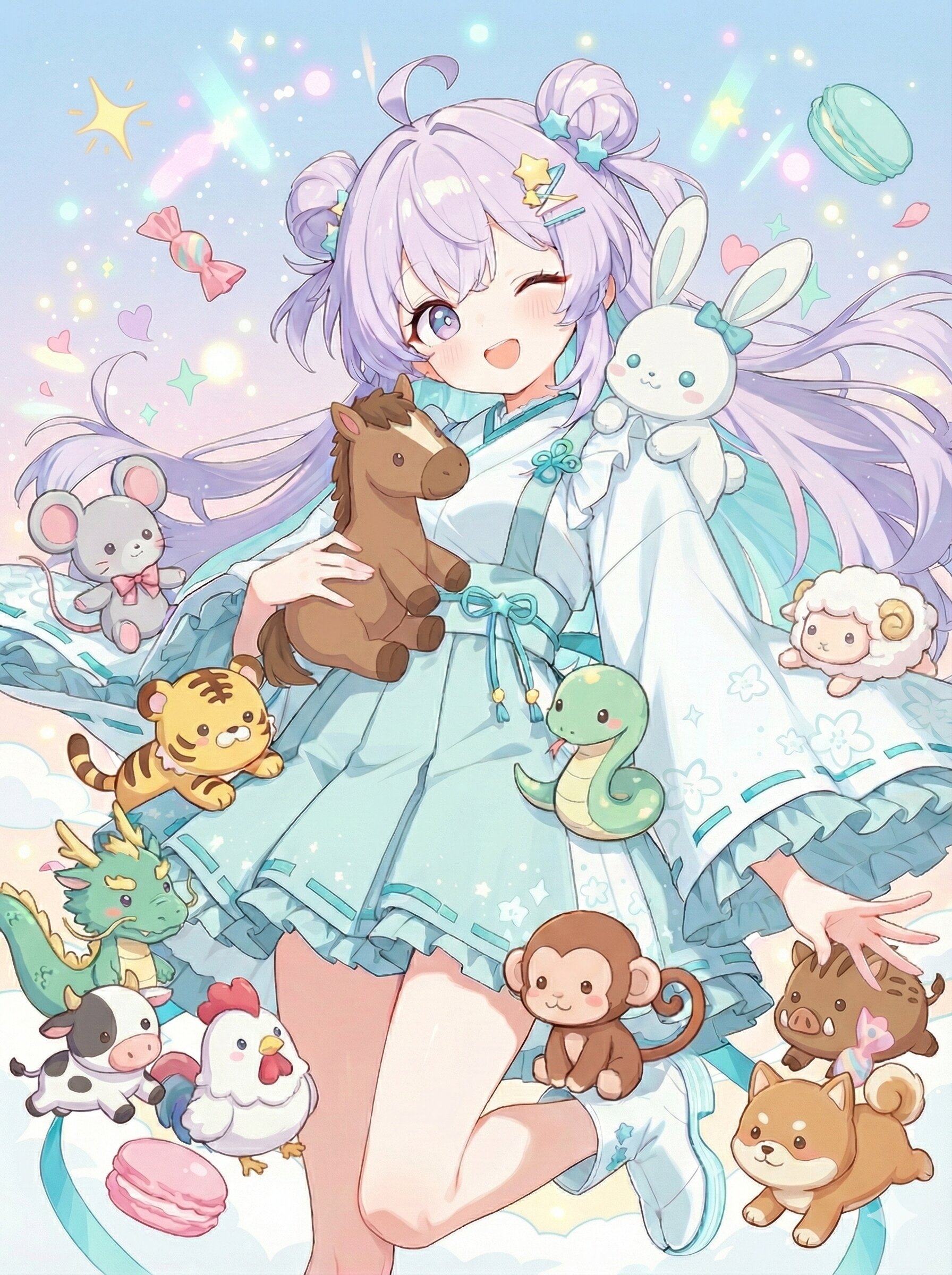 これは、、まゆらさんを中心に可愛い動物さんたちが大集合の十二支勢揃いの力作ですね!(*´▽`*)