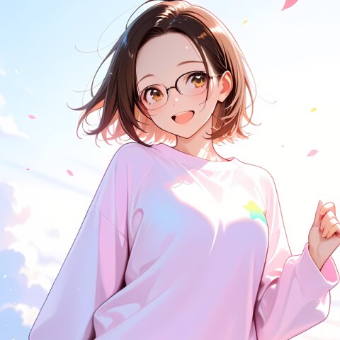 solo, Dreaming of mountain Fuji, closed eyes, pajamas, comforter, forehead, glasses, brown hair, short hair,