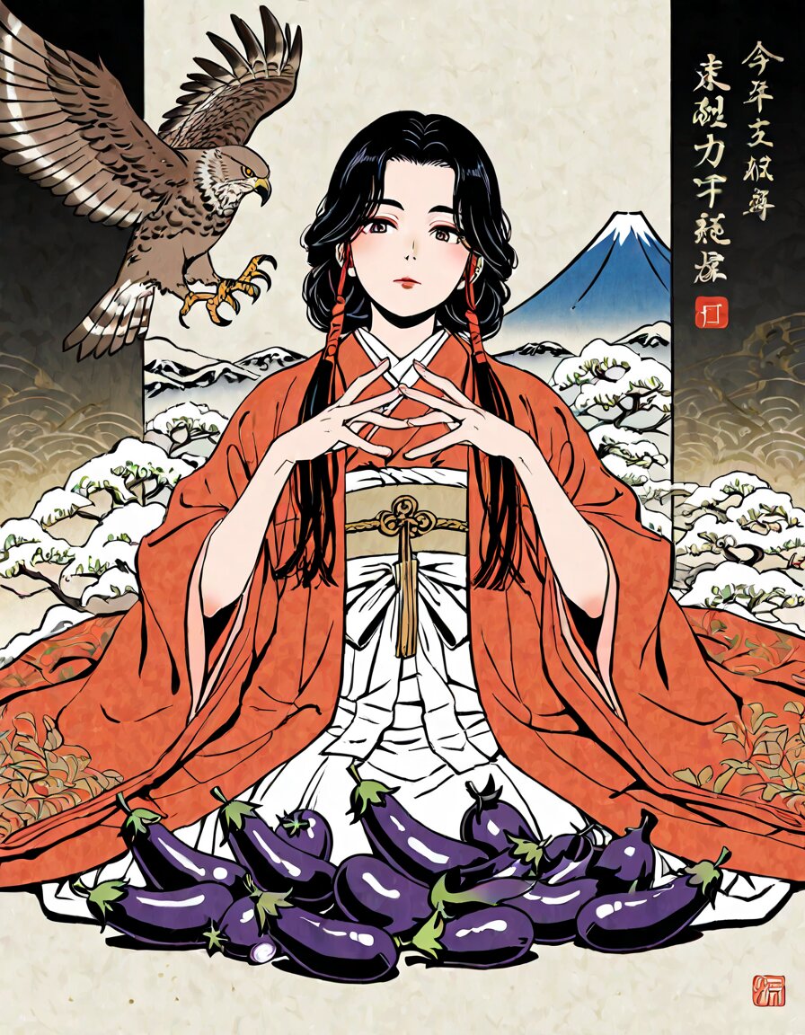 一富士二鷹三茄 夏樹 2026/1/2使用したAI Stable Diffusion XL 年齢制限 全年齢 いいね14 シェア #AIゆく年くる年 #初夢 ありきたりで申し訳ない。初夢に見ると縁起が良いと言われるものを集めてみました。 プロンプト なし コメント 送信 夏樹 2025年6月より活動開始 339投稿101フォロー96フォロワー メカ娘や美少女系のイラスト多め。 こだわりなく色々なジャンル画風で生成してます。(R18は作る予定なし) マリエールさん(うちの子)…原則毎週日曜日(投稿時間は未定) 四季子ちゃん、待てない猫ちゃんは不定期 テーマタグ作品を含むその他も合わせて一日一枚は投稿したい フォローする 他の作品 全てを見る 銃撃乙女 十日戎にゃ 四季子・モデルをする 秘密のアルバイト・コスプレマリエール フルーツの妖精ちゃん ボブスレーニャ! フィギアスケート・コスプレマリエール フルーツの妖精さん 四季子・カレーを食べる あ❣ 四季子・絵馬を奉納する わたしの推し色 月光蝶 日常のマリエールさん 虹色の羽の妖精 猫年が待てないニャ! 機巧少女 美衣子初日の出を見に行く もっと見る