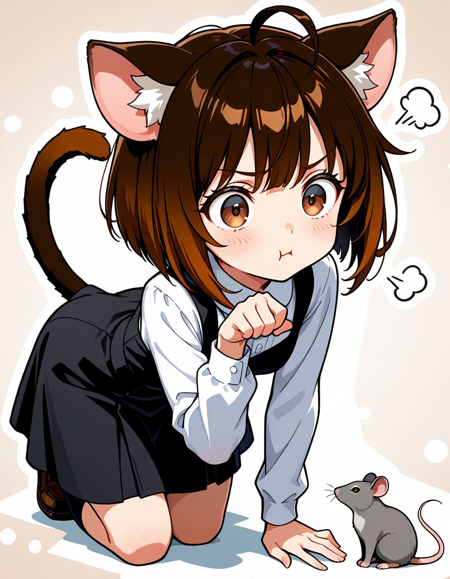 向こうはネズミがちょっと反撃(ネズミにプンプンマークがついてます)こっちは美衣子ちゃんがプンプンでちょっと仕訳けてみました。