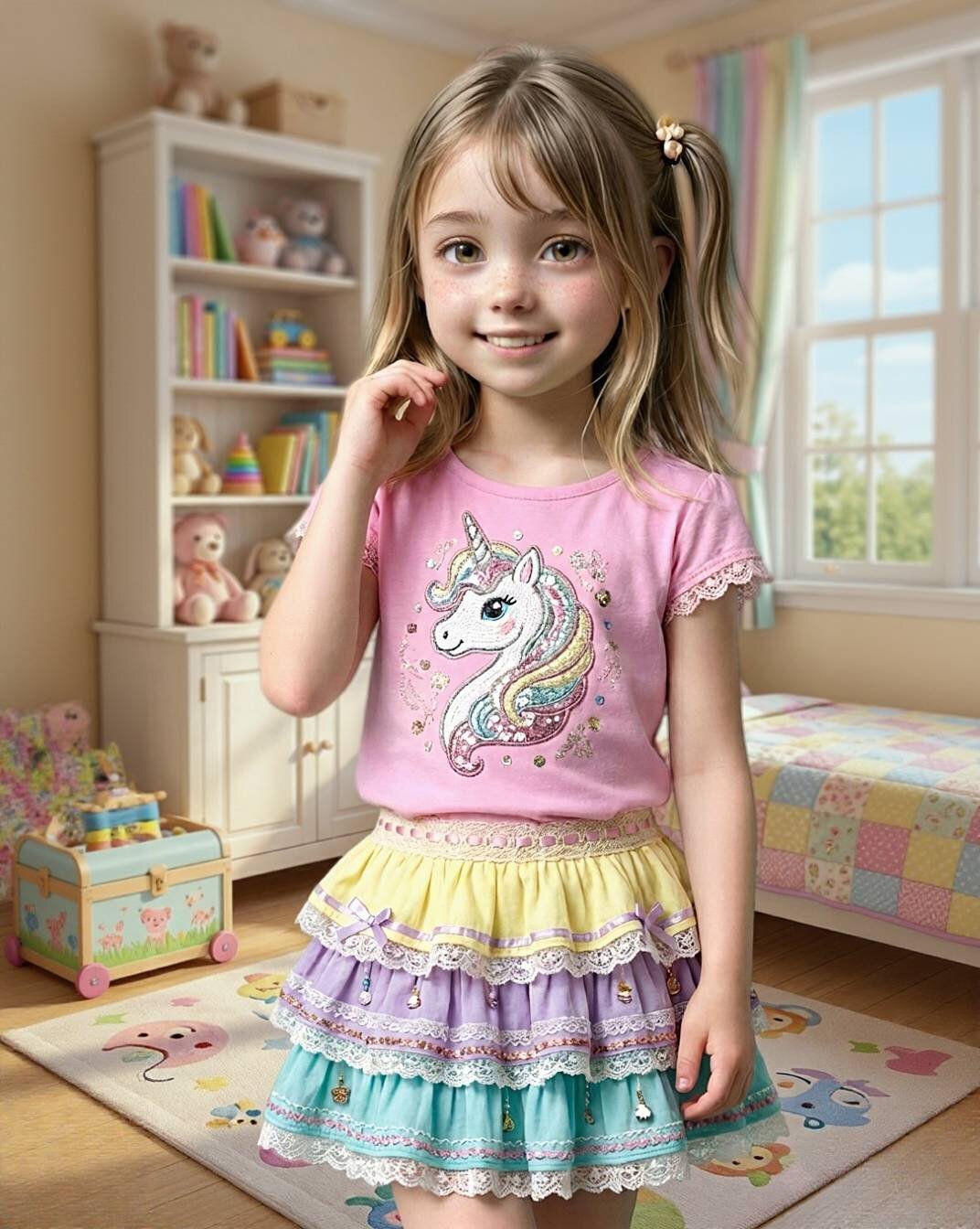 MLP風ウマ年シャツとフリルスカートの初夢コーデ MLP-style shirt and frilly skirt アトリエ レーズンバター Atelier Raisin Butter 2026/1/3使用したAI その他 年齢制限 全年齢 いいね2 シェア #loli #ロリ #虹 #十二支パレード #わたしの推し色 プロンプト なし コメント 送信 アトリエ レーズンバター Atelier Raisin Butter 2023年11月より活動開始 437投稿0フォロー58フォロワー かわいい女の子を投稿します。 I post cute girls. . https://raisinbutter.sakura.ne.jp/links.html?utm_source=iromirai フォローする 他の作品 全てを見る レイヤードレーススカートのパステルカラーコーデ Pastel-Colored Outfit with a Layered Lace Skirt デニムジャンパースカートのお散歩コーデ Denim jumper skirt outfit for a stroll ビーズと刺しゅう入りシャツと黒レーススカートのコーデ Beaded and embroidered shirt with black lace skirt outfit デニムベストとピクサー風Tシャツのコーデ Denim vest and Pixar-style T-shirt outfit レース付きワンピースのピクニックコーデ Picnic Outfit with Lace-Trimmed Dress アートシャツとレイヤードスカートのコーデ Art Shirt and Layered Skirt Outfit ジップパーカーとあったかマフラーのコーデ Zip-up hoodie and warm scarf outfit しましまロンTとリボン付きスカートのコーデ Striped long-sleeve T-shirt and ribbon-trim skirt outfit マイメロシャツとマイメロスカートのコーデ My Melody Shirt and My Melody Skirt Outfit フリースジャケットとレーススカートのコーデ Fleece jacket and lace skirt outfit レースとリボンのチェック柄ドレスコーデ Lace and ribbon check pattern dress outfit 毛糸のジップジャケットとシンプルスカートの新年コーデ Knit Zip Jacket and Simple Skirt トラックジャケットとシンプルスカートのスポーティーコーデ あけましておめでとうございます! Happy New Year! 今年一年、ありがとうございました! Thank you for a great year! 今日はがんばって歌います!紅白アイドルコーデ I'll sing my heart out today! NYRE Idol Outfit シナモンTシャツと黒デニムスカートのコーデ Cinnamon T-shirt and black denim skirt outfit レトロロゴTとビンテージデニムスカートのコーデ Retro Logo T-Shirt and Vintage Denim Skirt Outfit もっと見る
