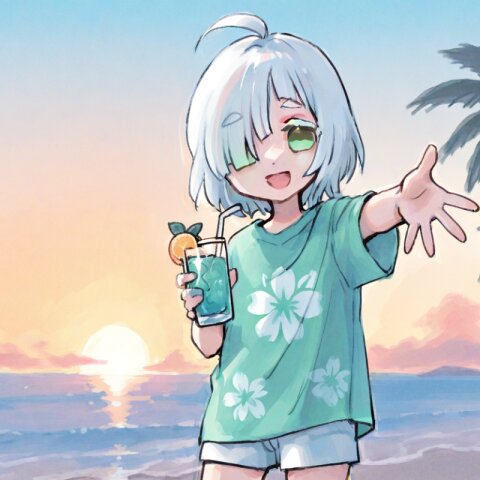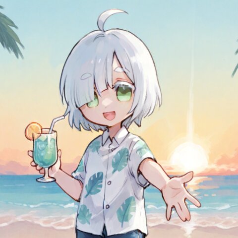 <lora:inmnstyleilxl:0.9>, ultra-detailed, best quality, masterpiece, very aesthetic, watercolor painting, general, chibi, solo, 1girl, gothic lolita fashion, black kimono, shoulder decorated with black ruffles, long sleeves, wide sleeves, black flare skirt, skirt decorated with black ruffles, black tights, red rose hair ornament, (bright white hair), short hair, blunt bangs, white thick eyebrow, white colored eyelashes, (hair over one eye), ahoge, mint green eyes, sleeves past wrists, smile, cowboy shot