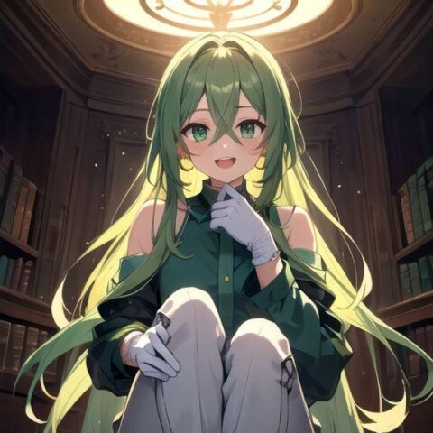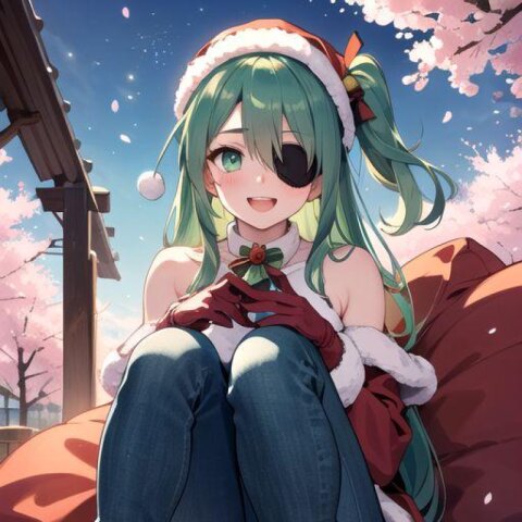 2026/01/04 森にて素足にジーンズの緑髪少女